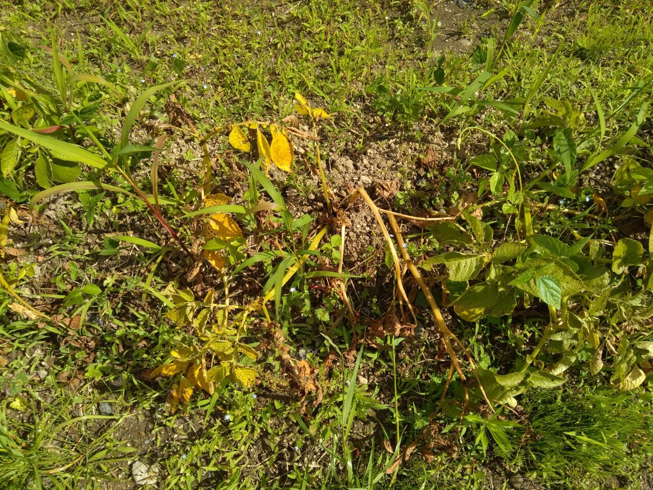 ジャガイモが枯れてきたので、一株だけ掘りました。