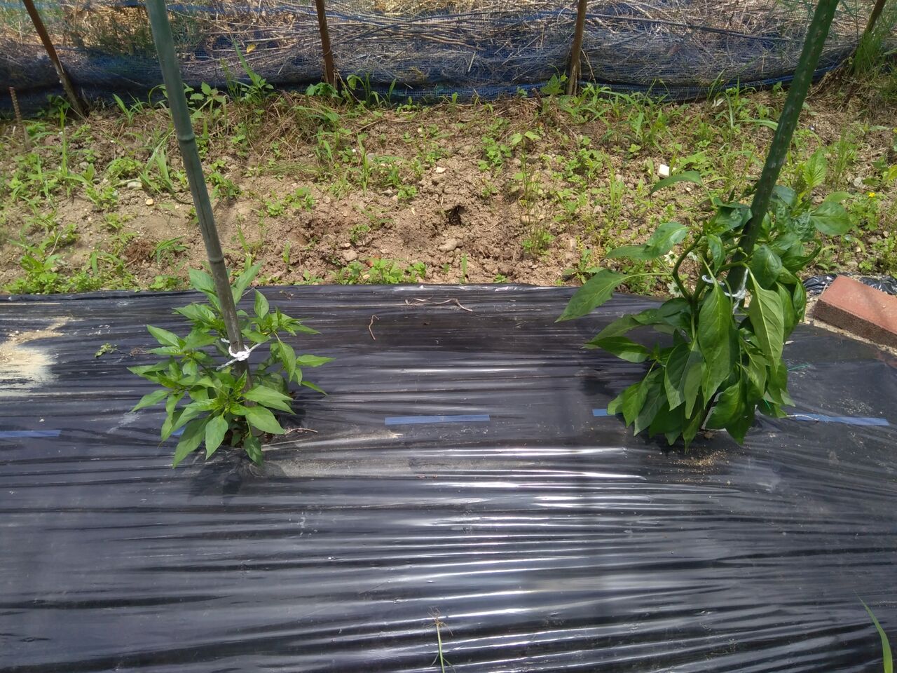 ピーマン、唐辛子にも支柱をたてました。