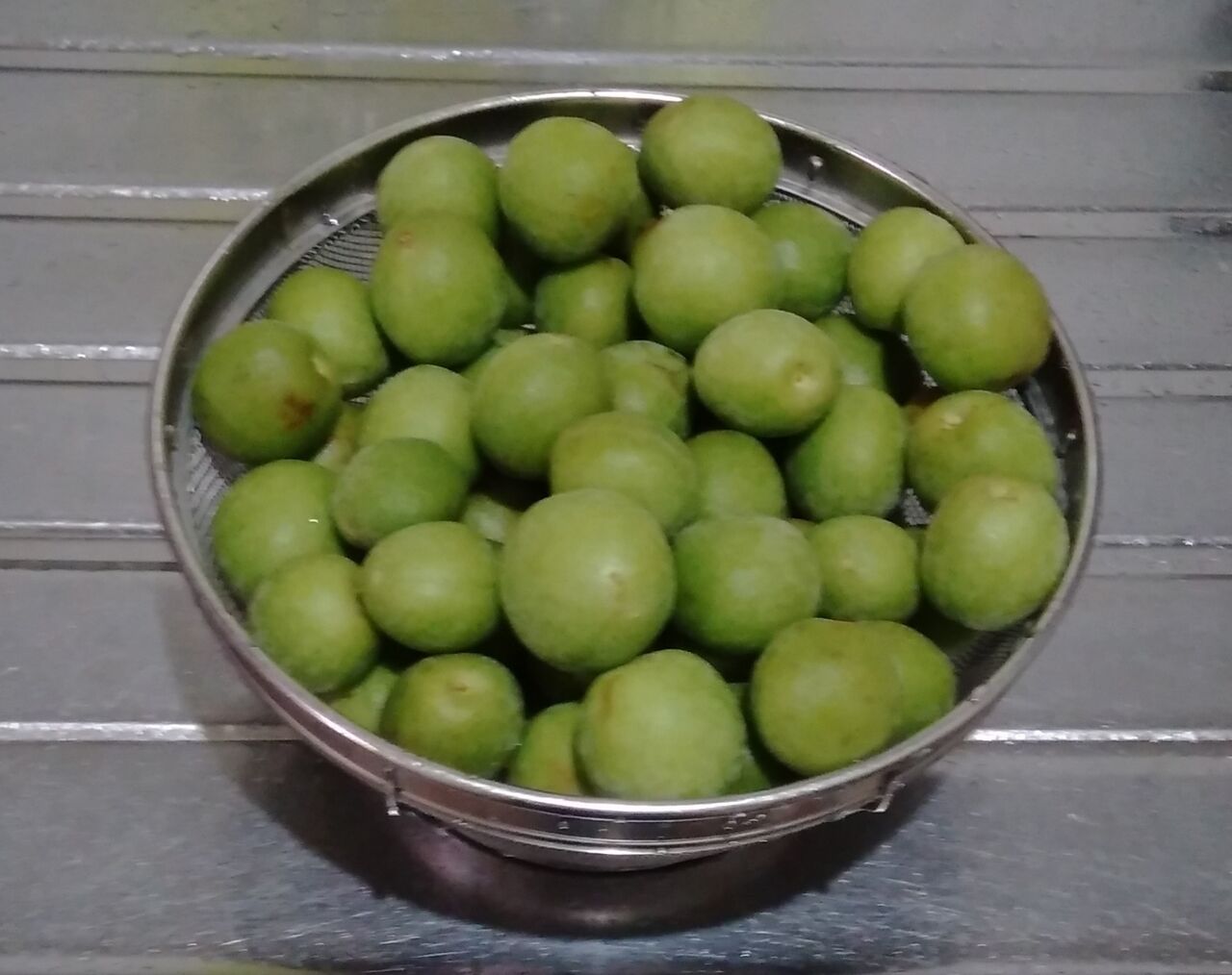 まだ青いかなと思ったのですが、TVニュースで北野天満宮の「大福梅」の摘み取りをやっていて、同じような青さでした。
