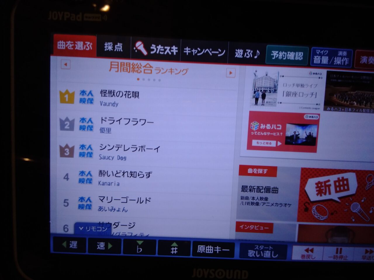 昨日、3年4か月ぶりにカラオケボックスに行ってきました。(コロナの感染防止で自粛していました。)