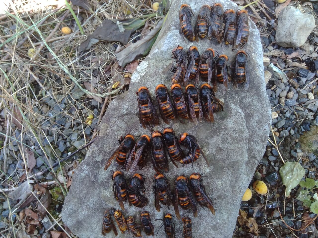 ペットボトルの中に、こんなにたくさんの蜂が入っていました。
