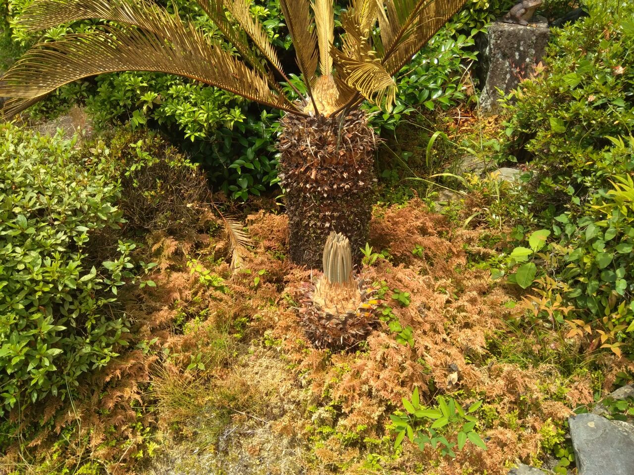 (初めて、蘇鉄の花を見ました。)