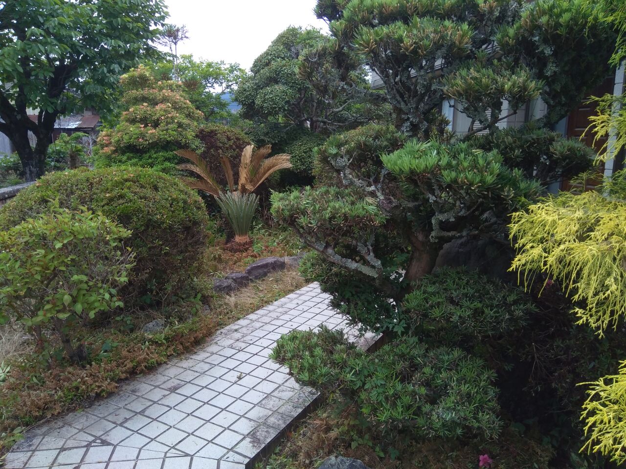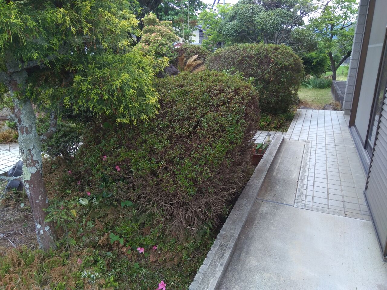 ポイントは、7~8本あるサツキの剪定と、お袋の車椅子が通るスロープの付近です。