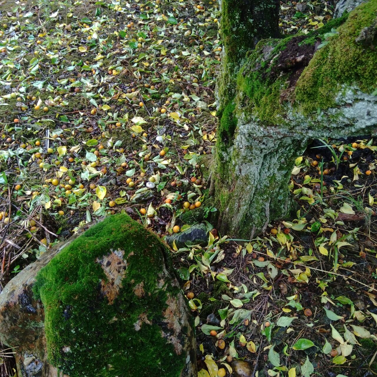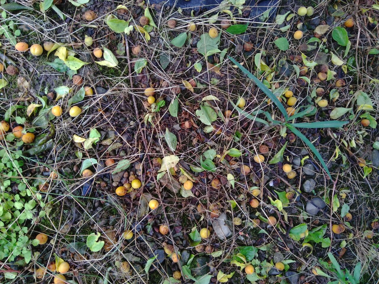 地面は梅の実でいっぱいです。