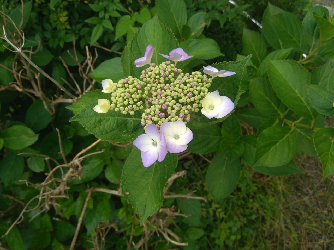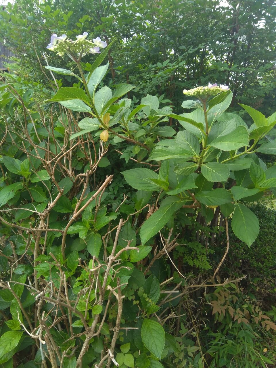 紫陽花(アジサイ)も、下のほうは食べられて、上のほうだけが残っています。