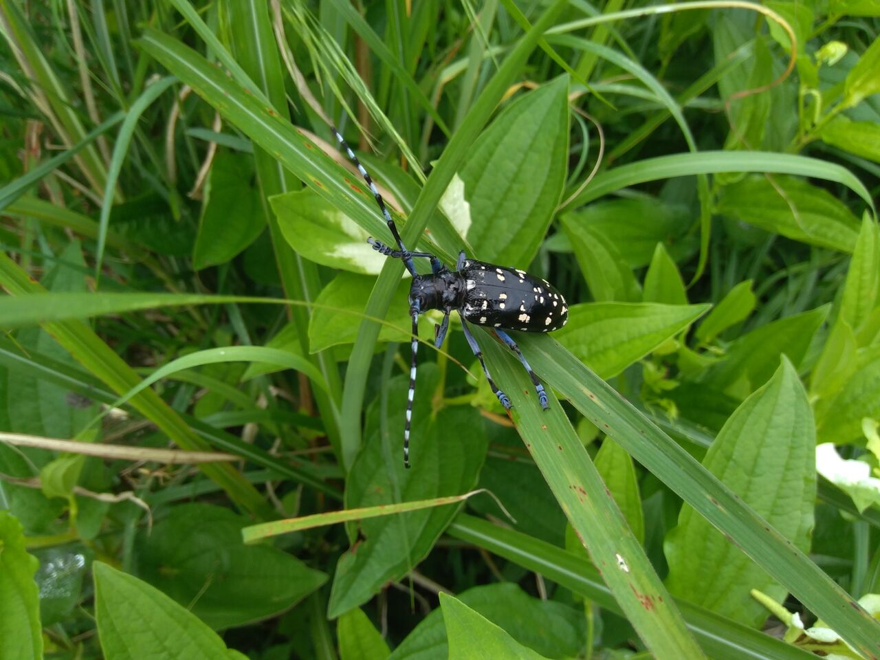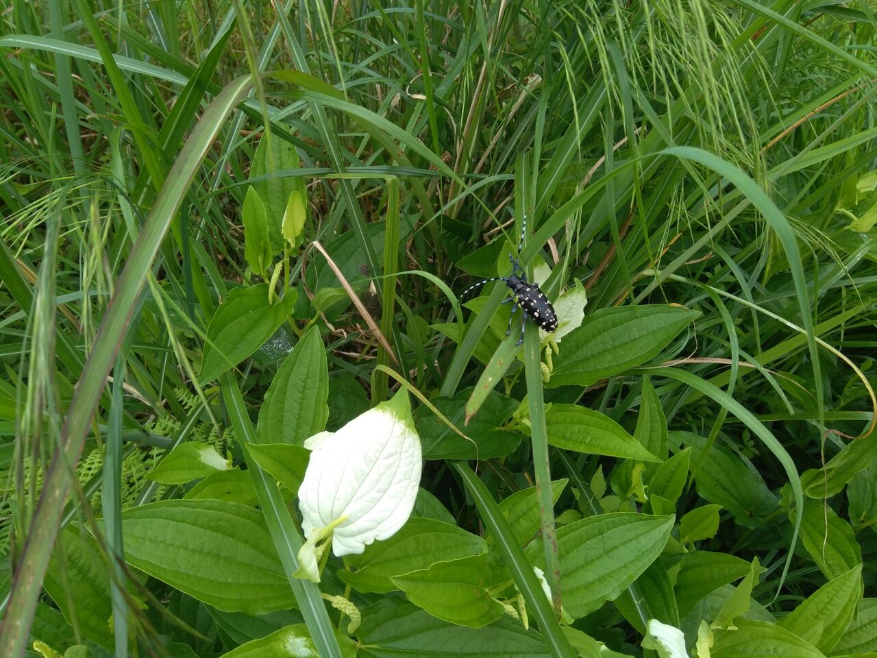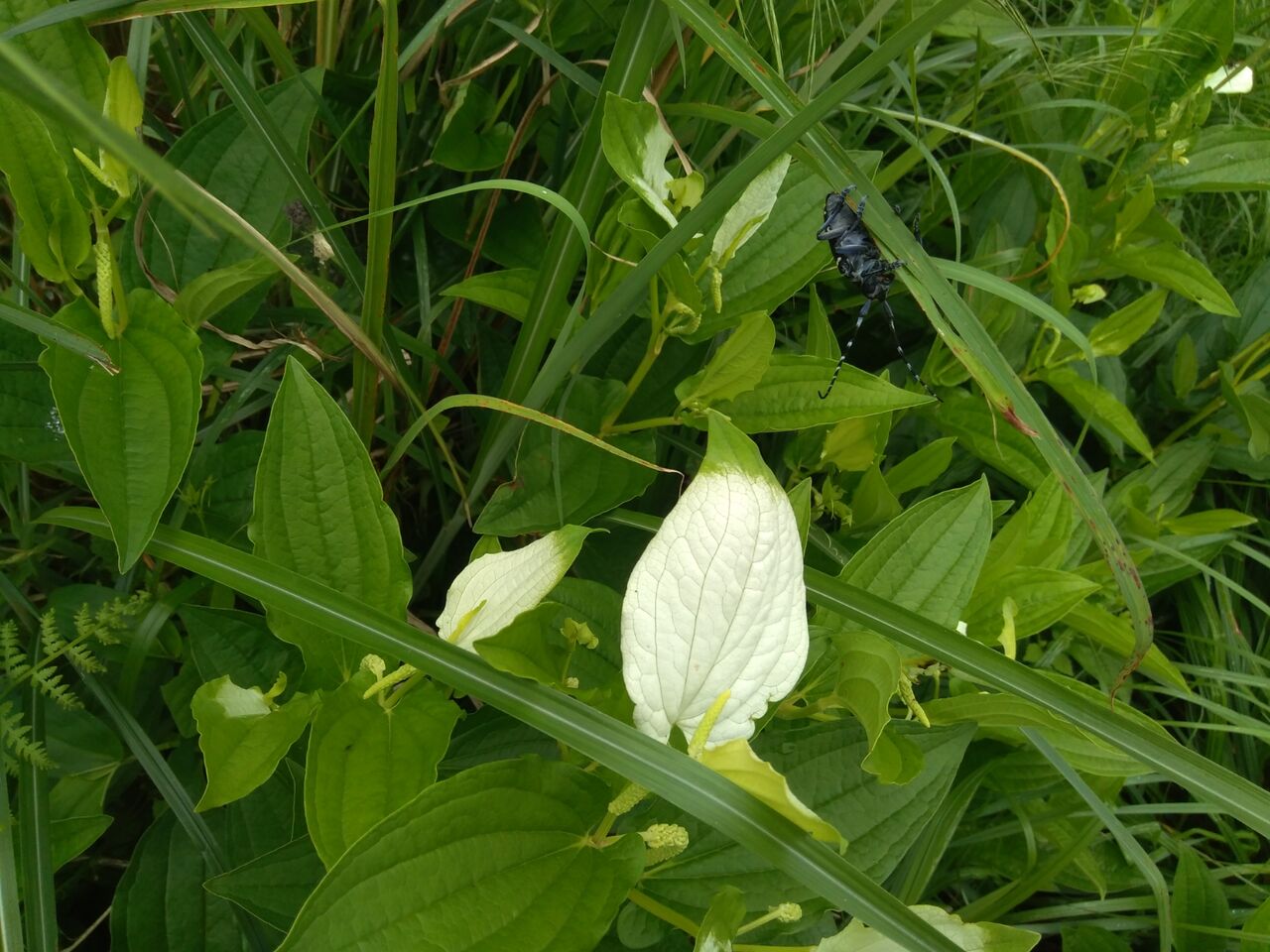 散歩途中で見つけた半夏生(ハンゲショウ)です。