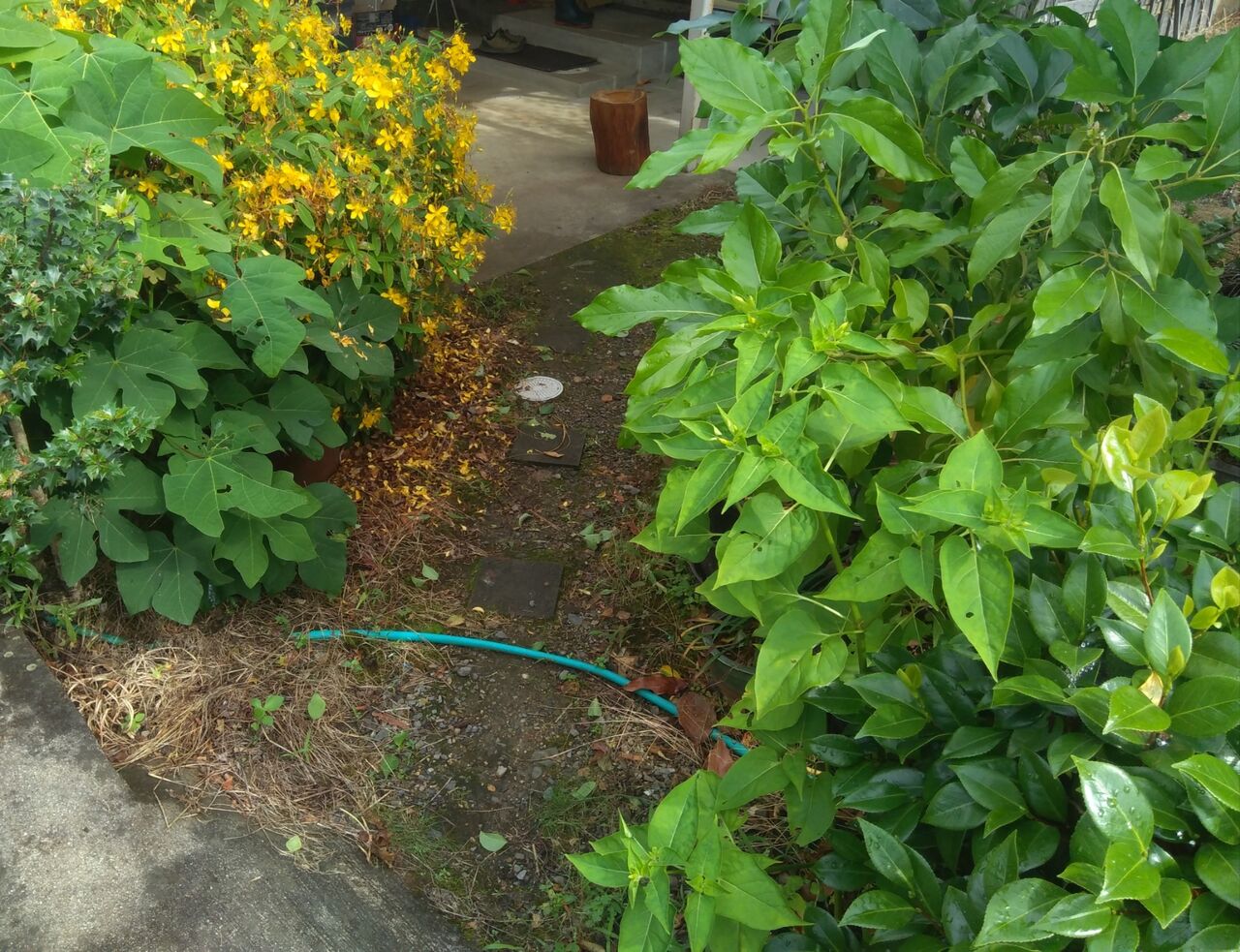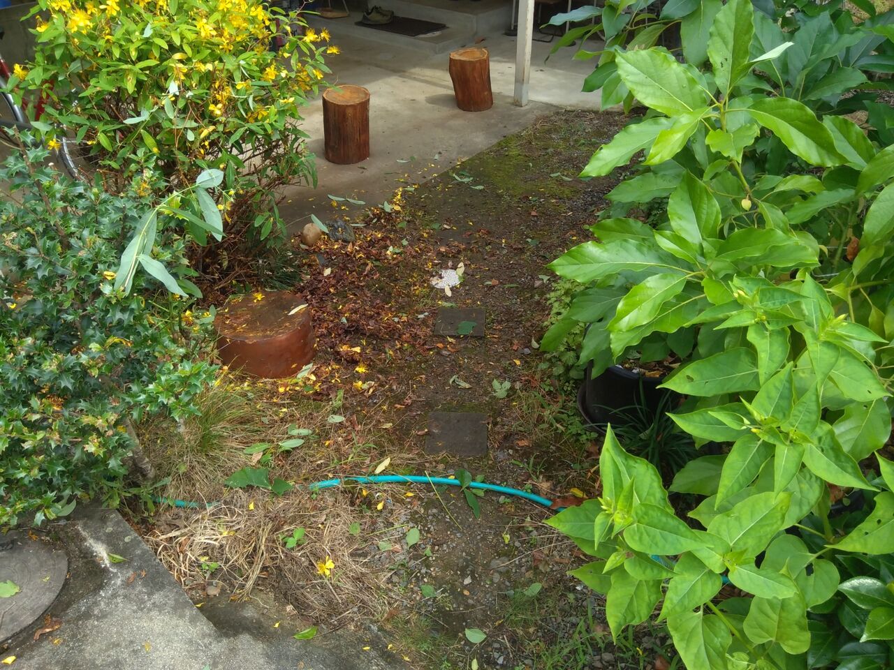 勝手口から離れまでの通路が、うっそうとしてきたので、ヘッジトリマーで散髪しました。