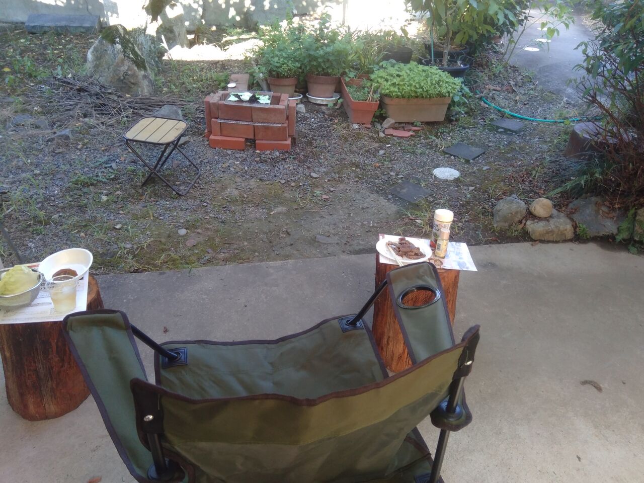 (裏庭にBBQコンロを作った。)
