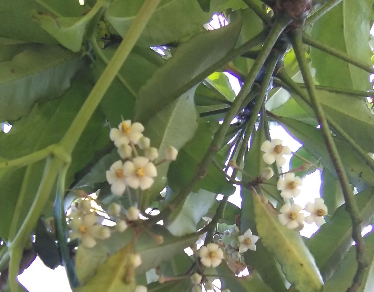 裏庭の万両の花です。