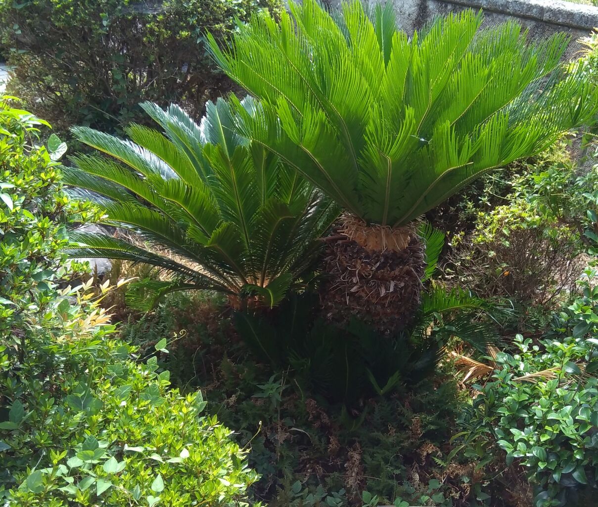 (奥が雄花が咲いた蘇鉄です。)