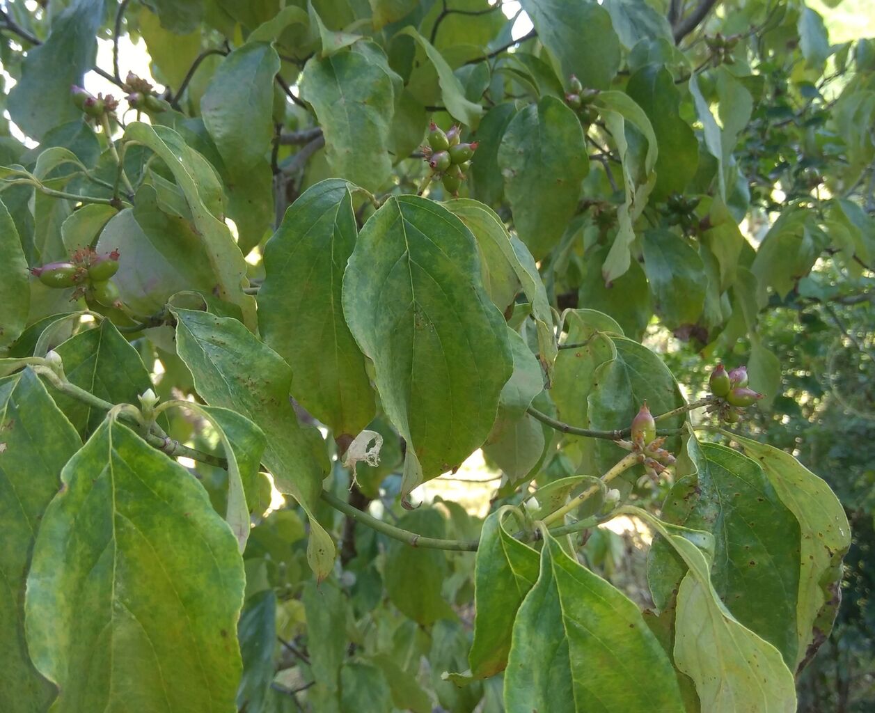 庭のハナミズキの青い実です。