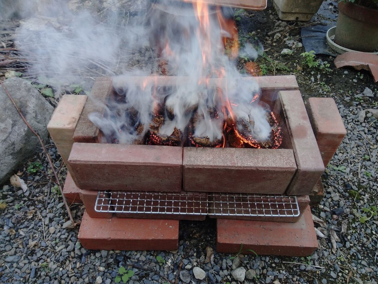 (レンガでBBQコンロを作った。)
