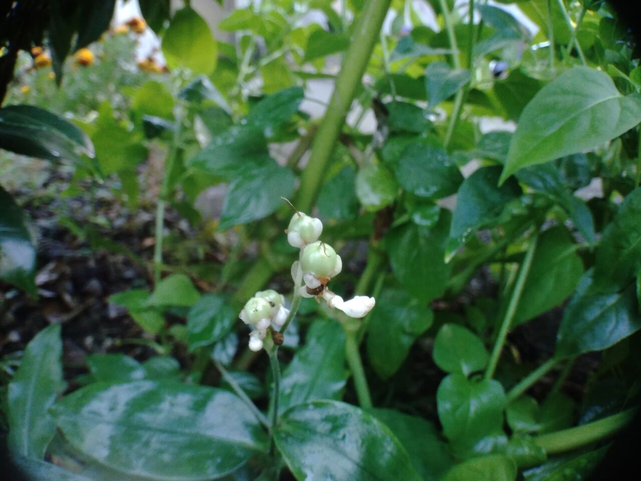 以前にUPした裏庭のヤブミョウガの花が実になっていました。