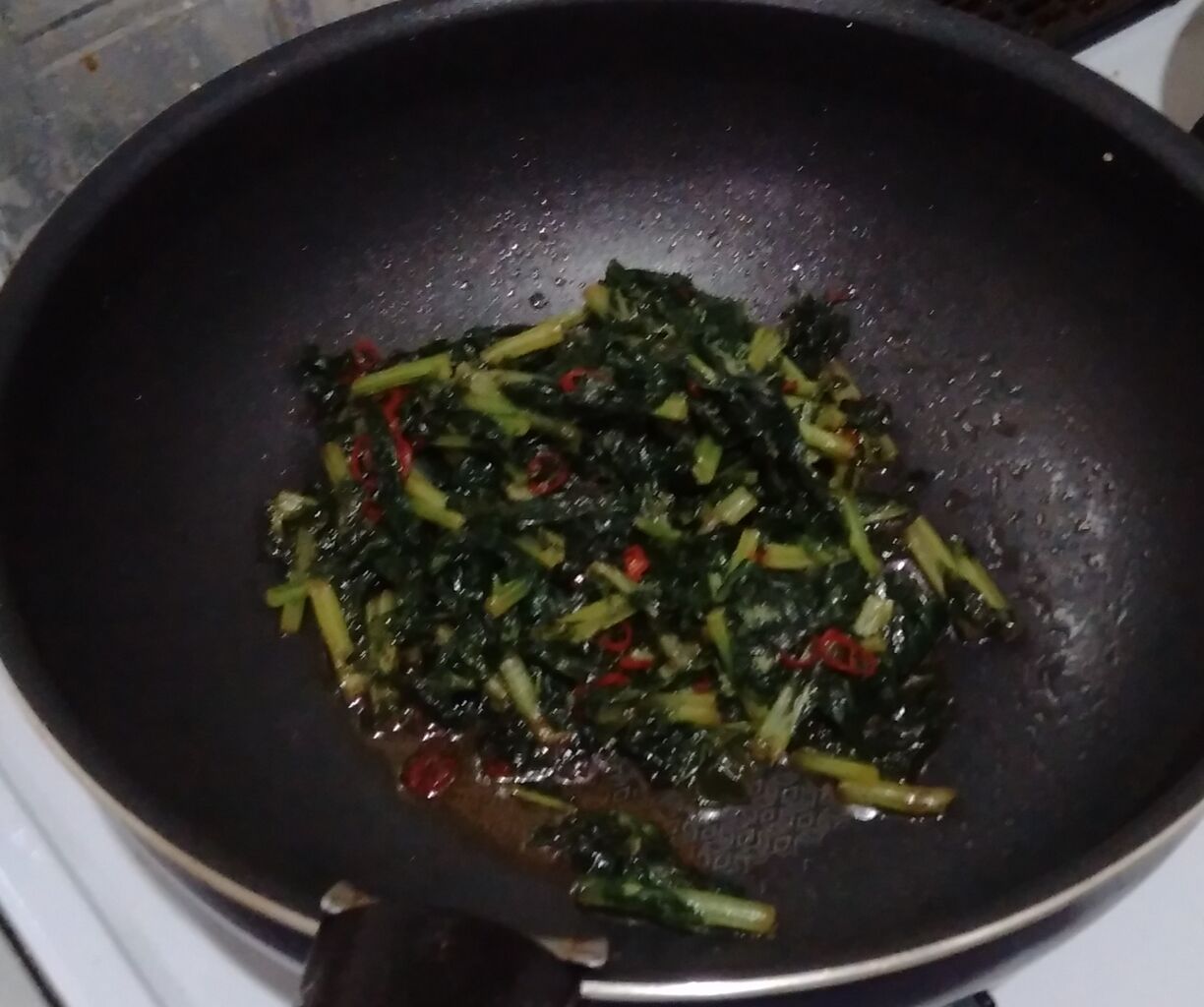 葉っぱの部分は、炒めました。