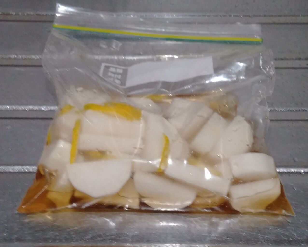 下の【関連ページ】に作り方がありますが、前回より砂糖少なめで、大根は分厚く切りました。