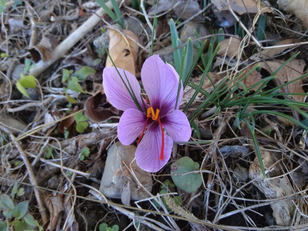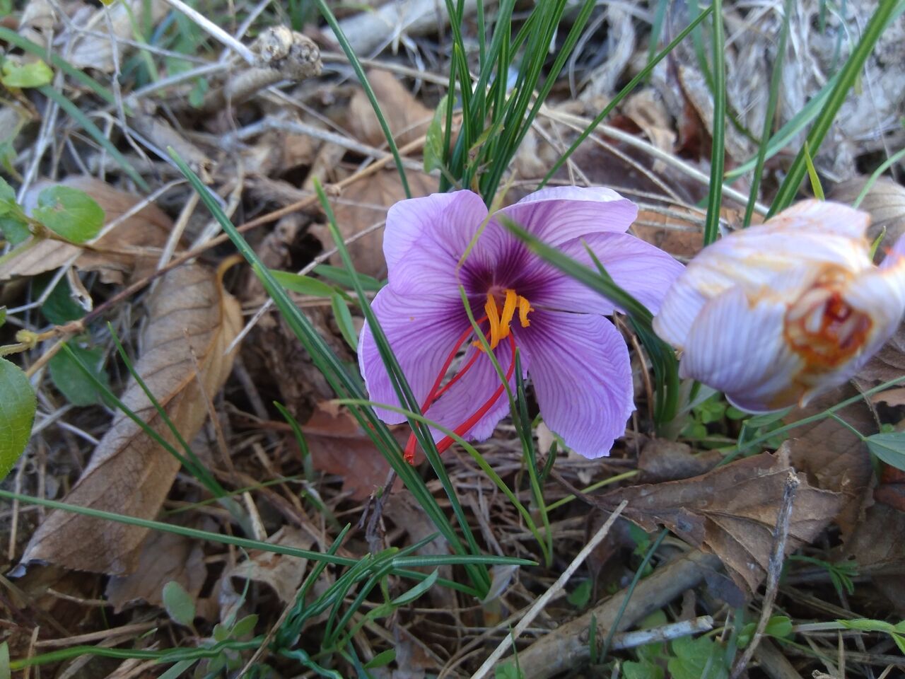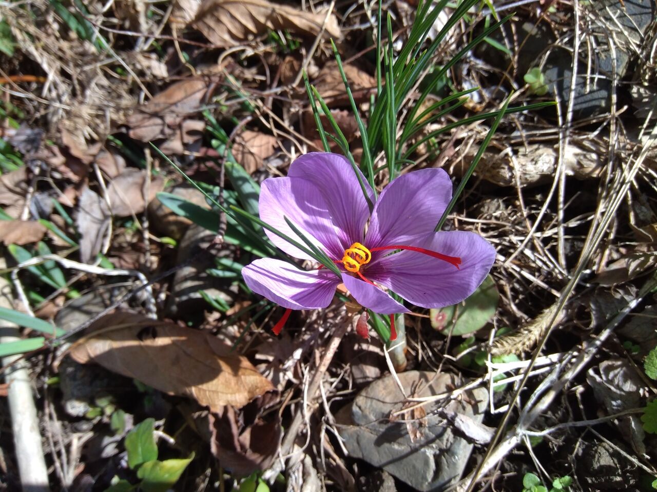 畑のひとりばえ(自然生え)のサフランです。