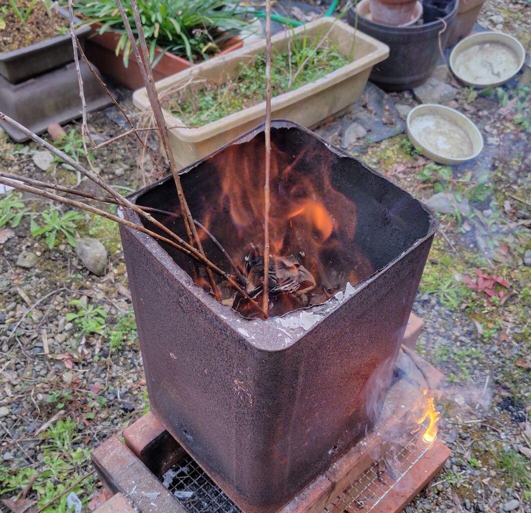 ついでに、裏庭に落ちている枝や落ち葉も燃やしました。