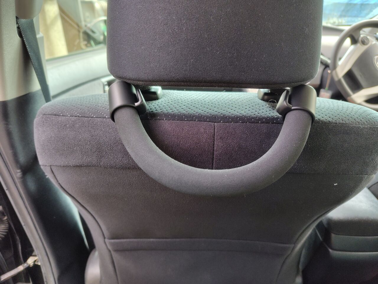 早速、車の助手席のヘッドレストにセットしました。