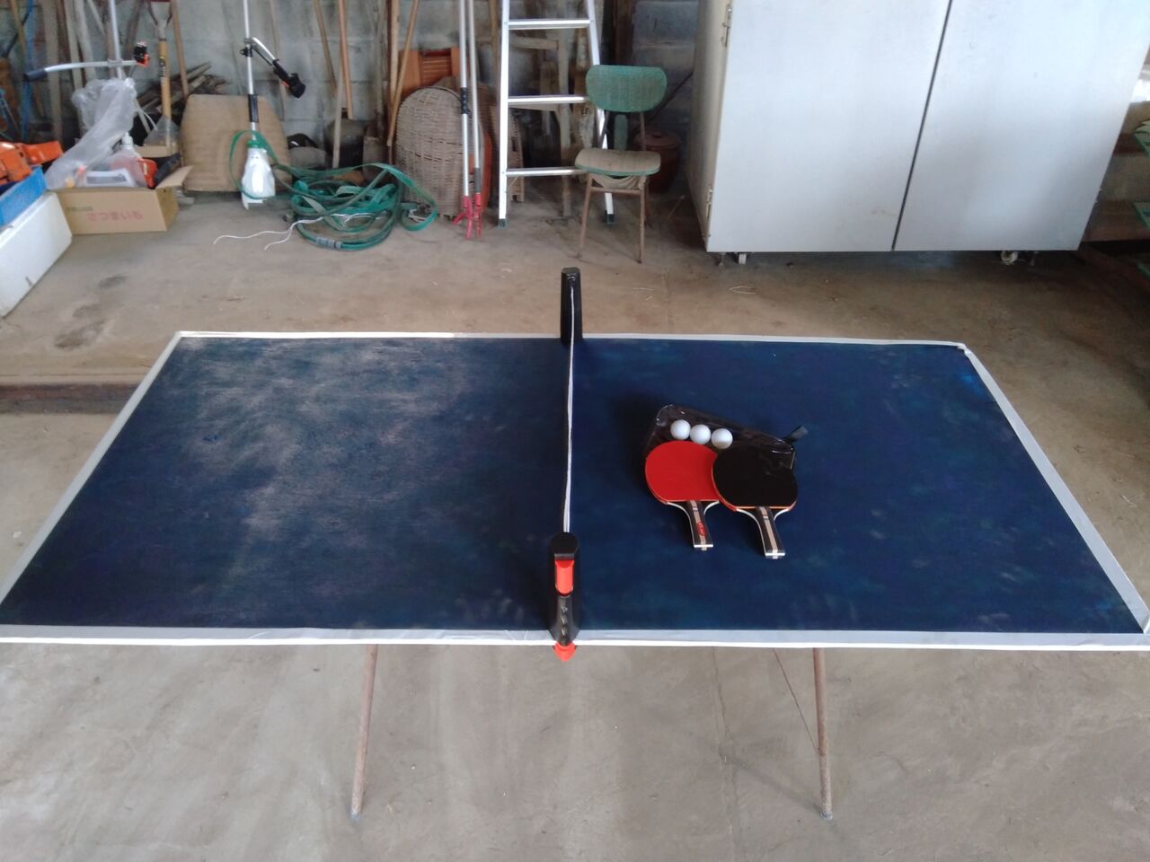 (コンパネで卓球台を作った。)