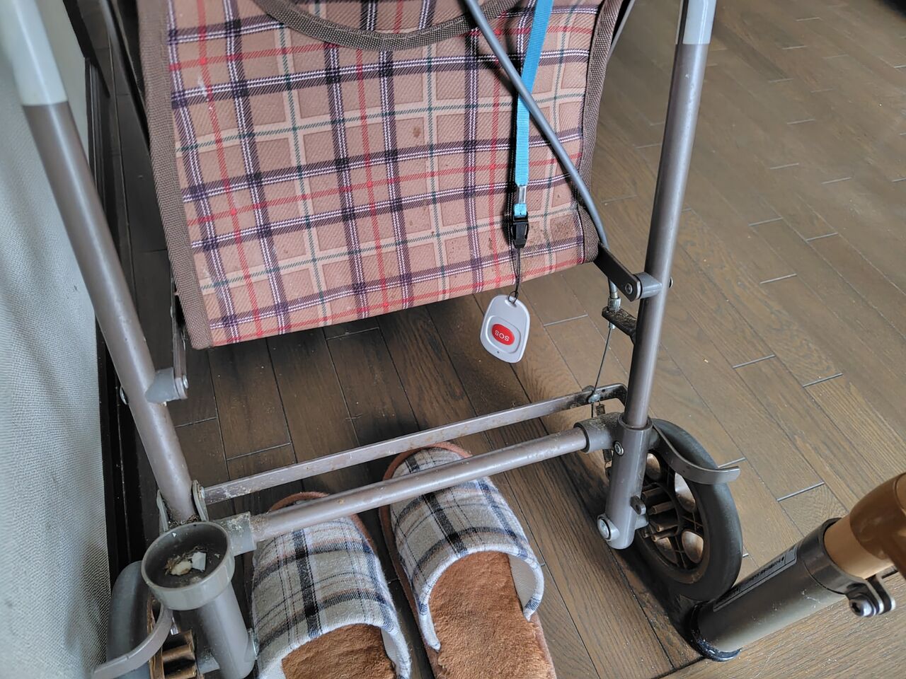 先日に購入した呼び出しベルをシルバーカーとトイレの手すりにセットしました。