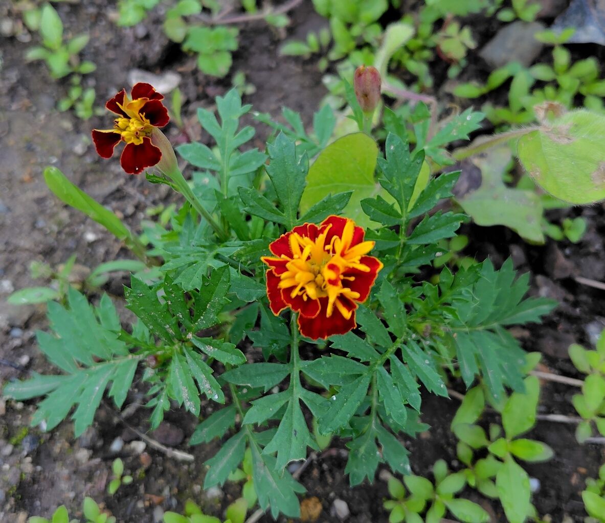 農薬を散布したくないので、今年は数種類のコンパニオンプランツで、野菜を囲っています。