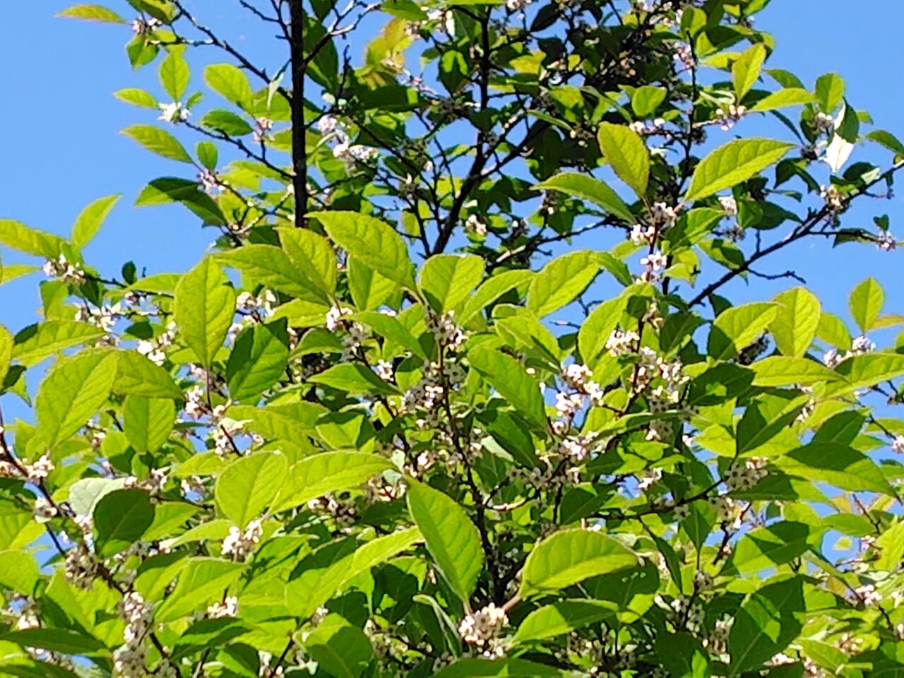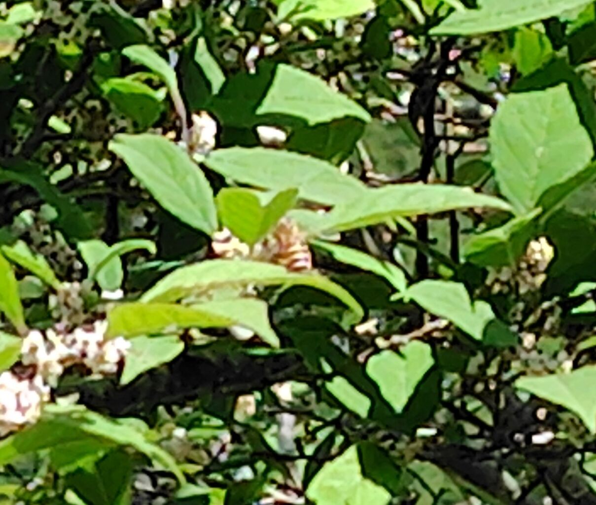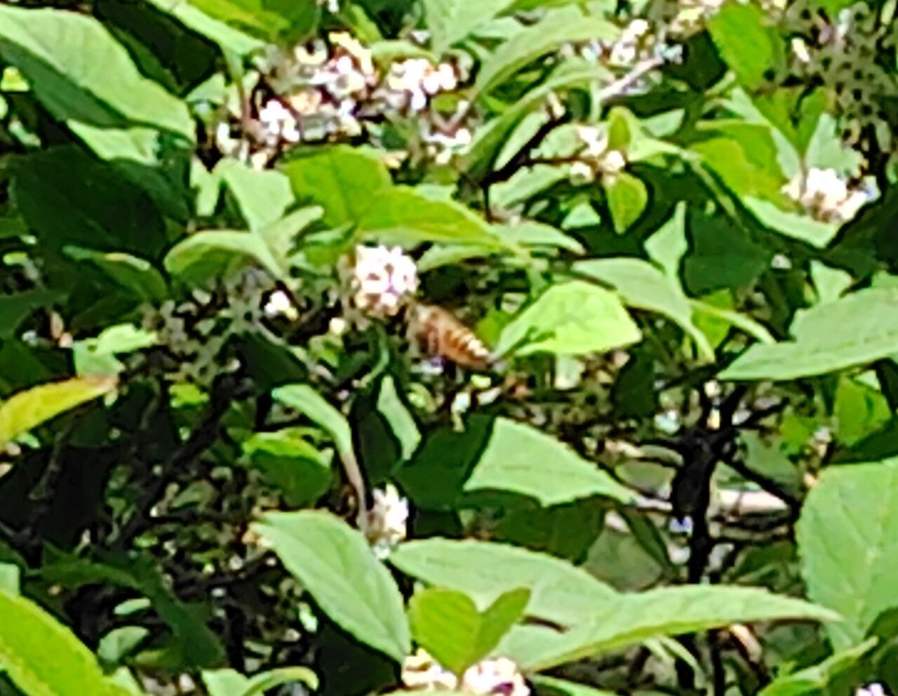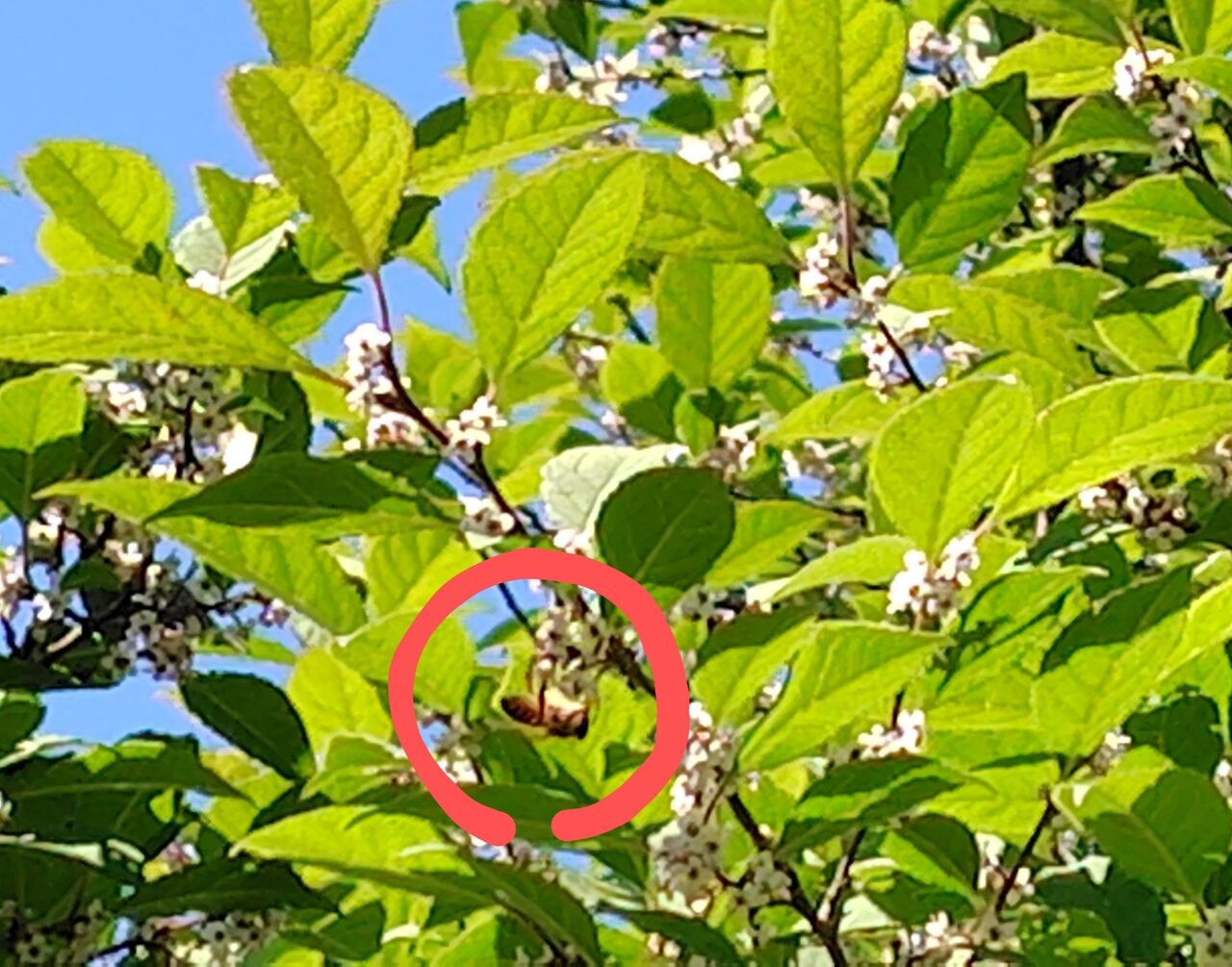 この木の下に、ニホンミツバチの巣箱を置いています。