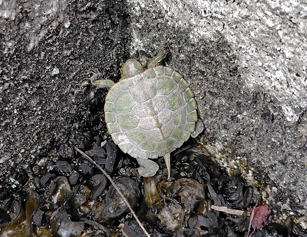 Googleレンズで調べると、「ミシシッピアカミミガメ」と出てきました。