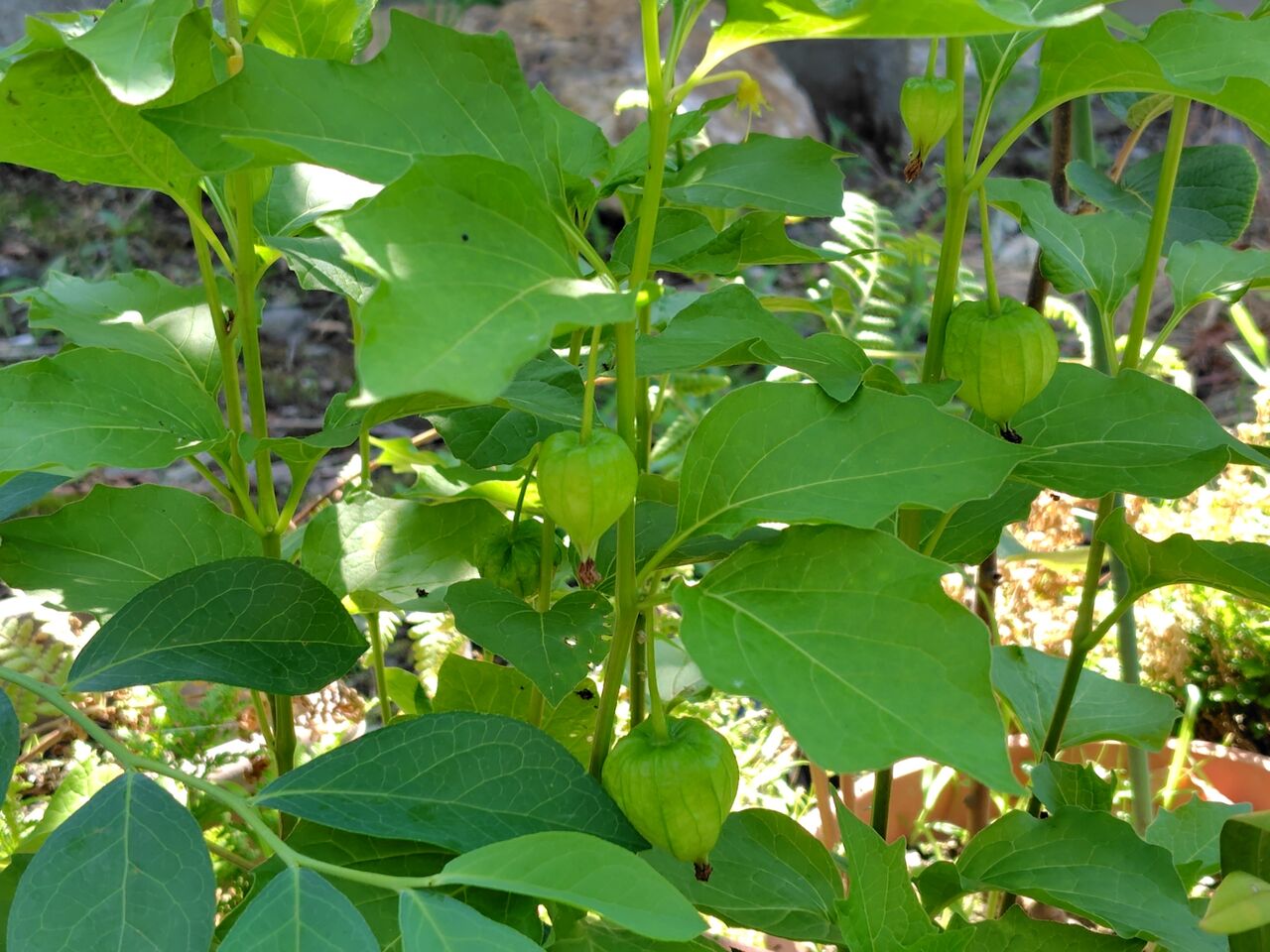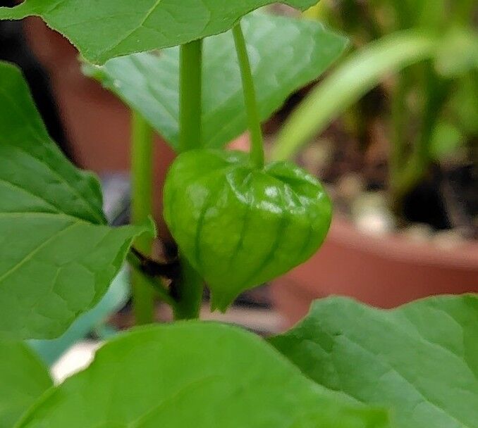 裏庭の鉢植えの鬼灯(ホオズキ)です。