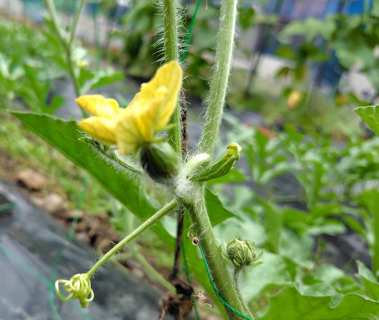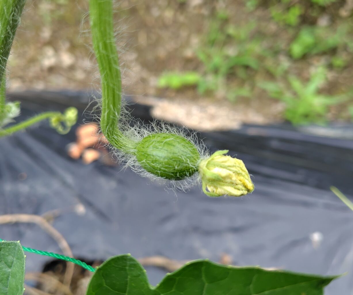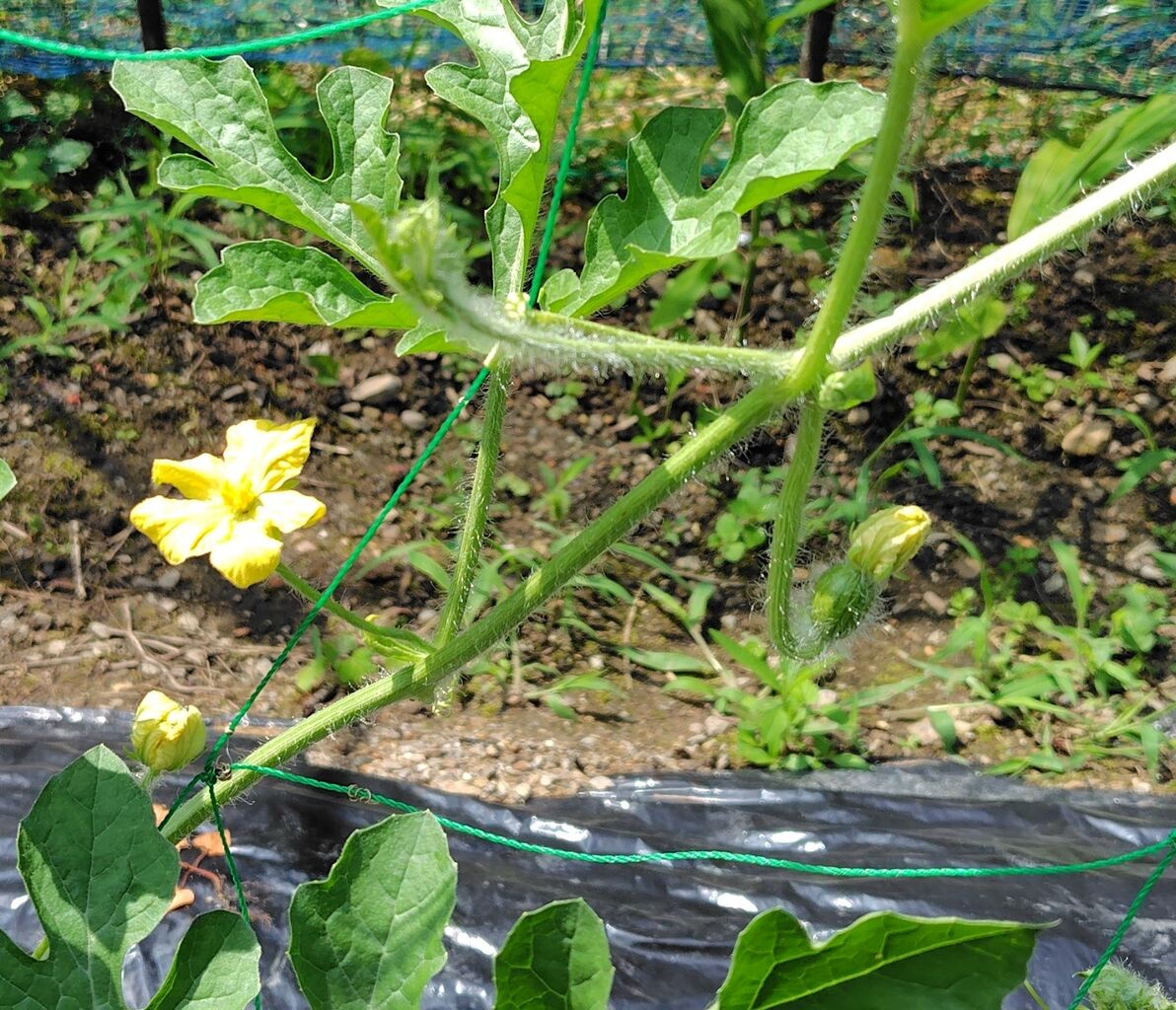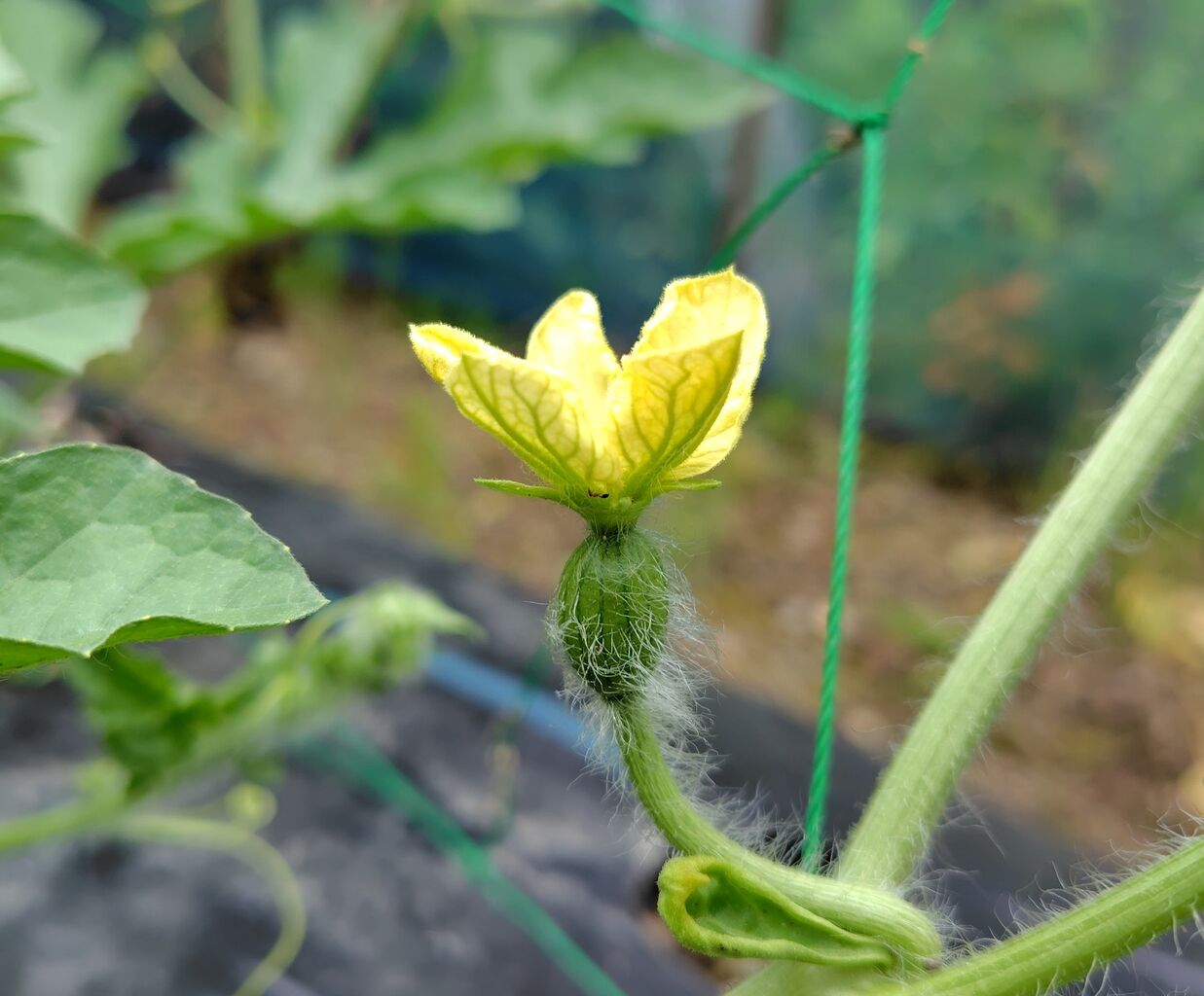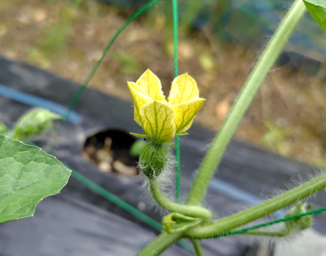 今年は、早い時期に親蔓の摘芯をしたせいか、雌花もほどほどに咲いています。