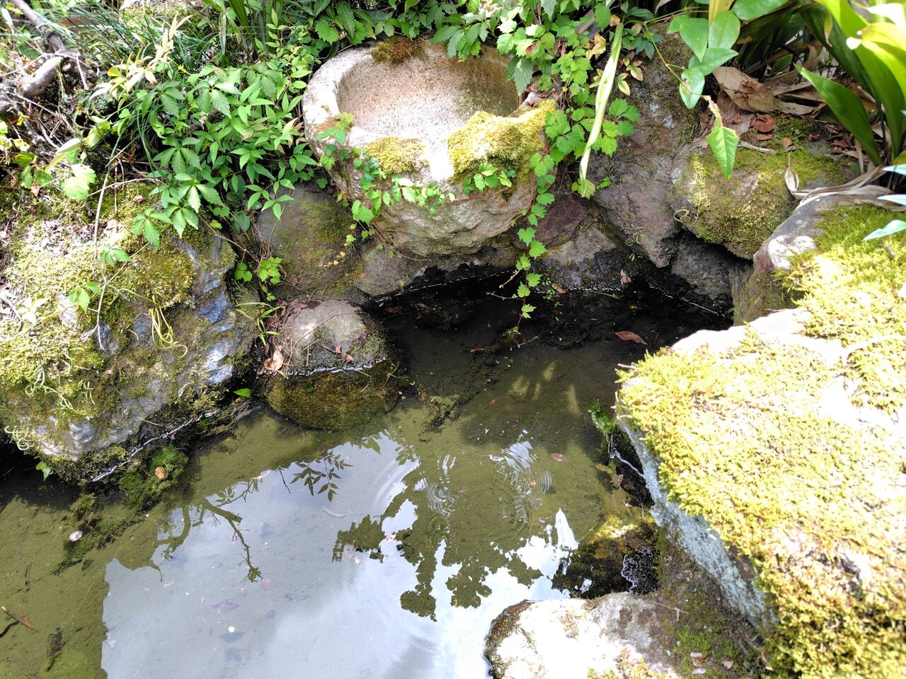 この高さをよじ登らないと、手水鉢に入ることができません。