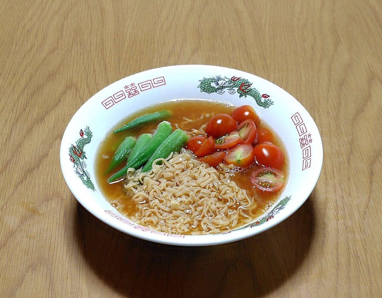 畑で収穫したオクラとミニトマトをトッピングしました。