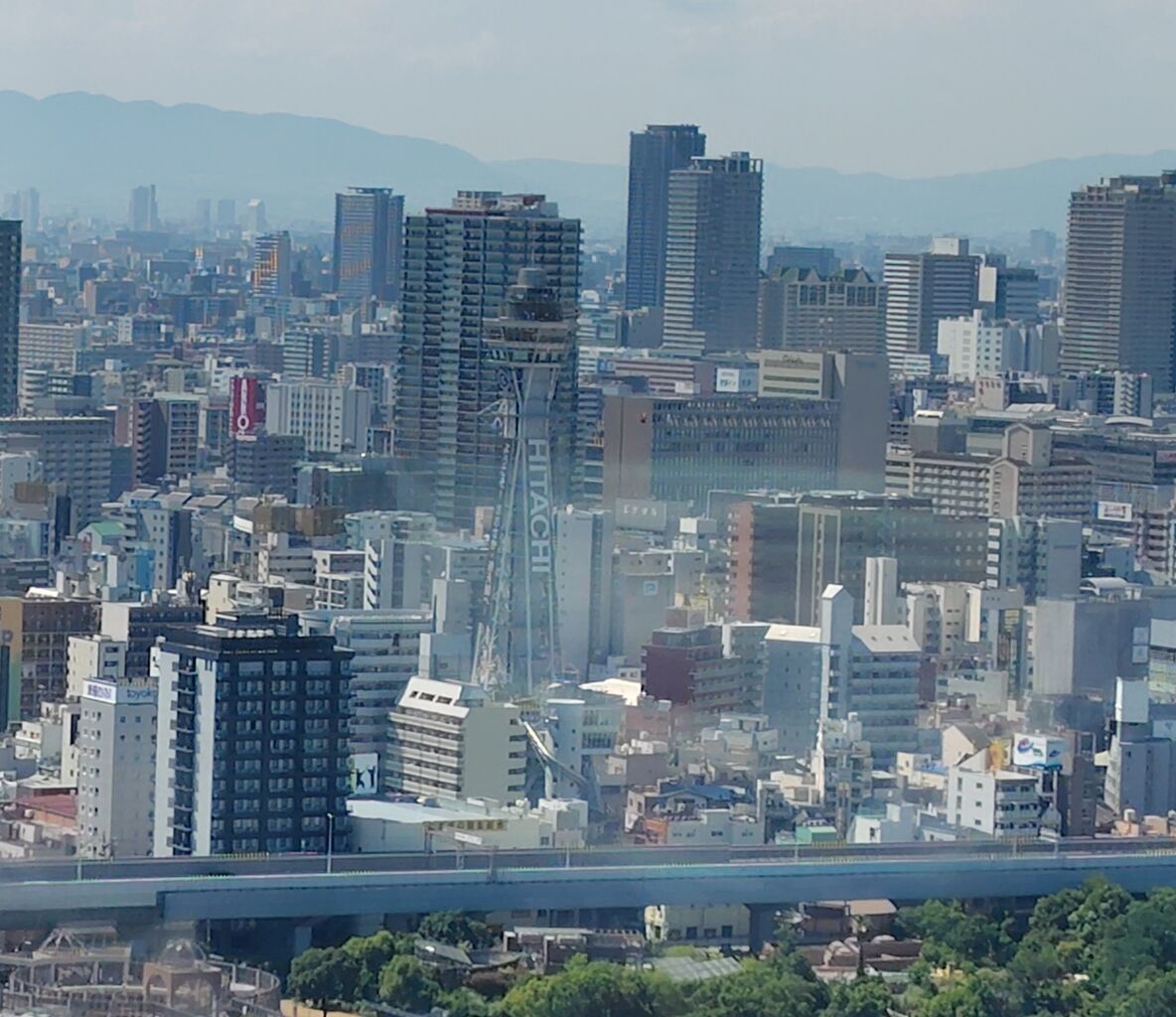 写真の中央に通天閣が写っているのですが、通天閣が低くて見落としてしまいそうでした。