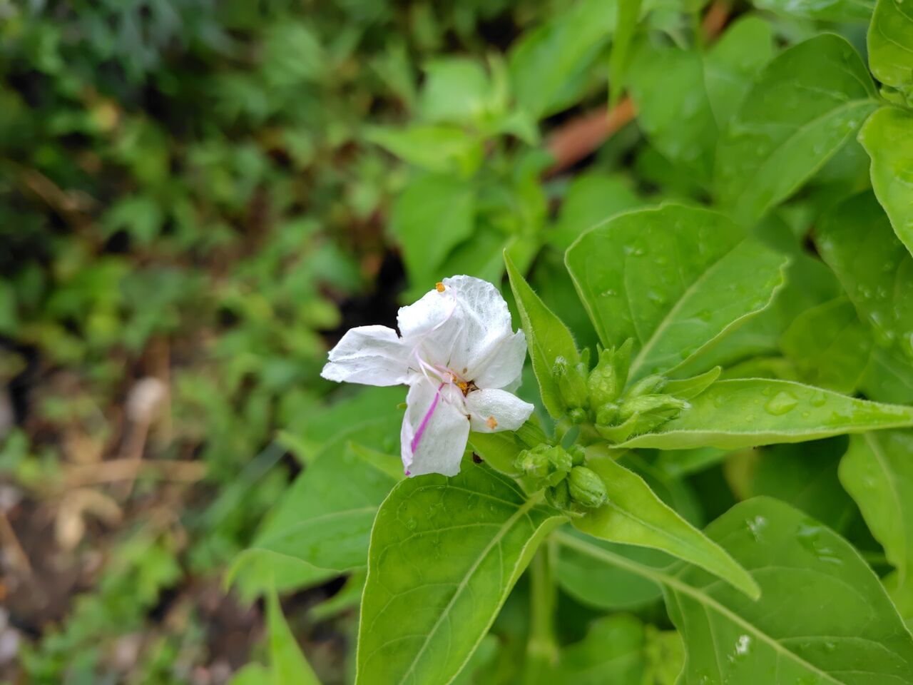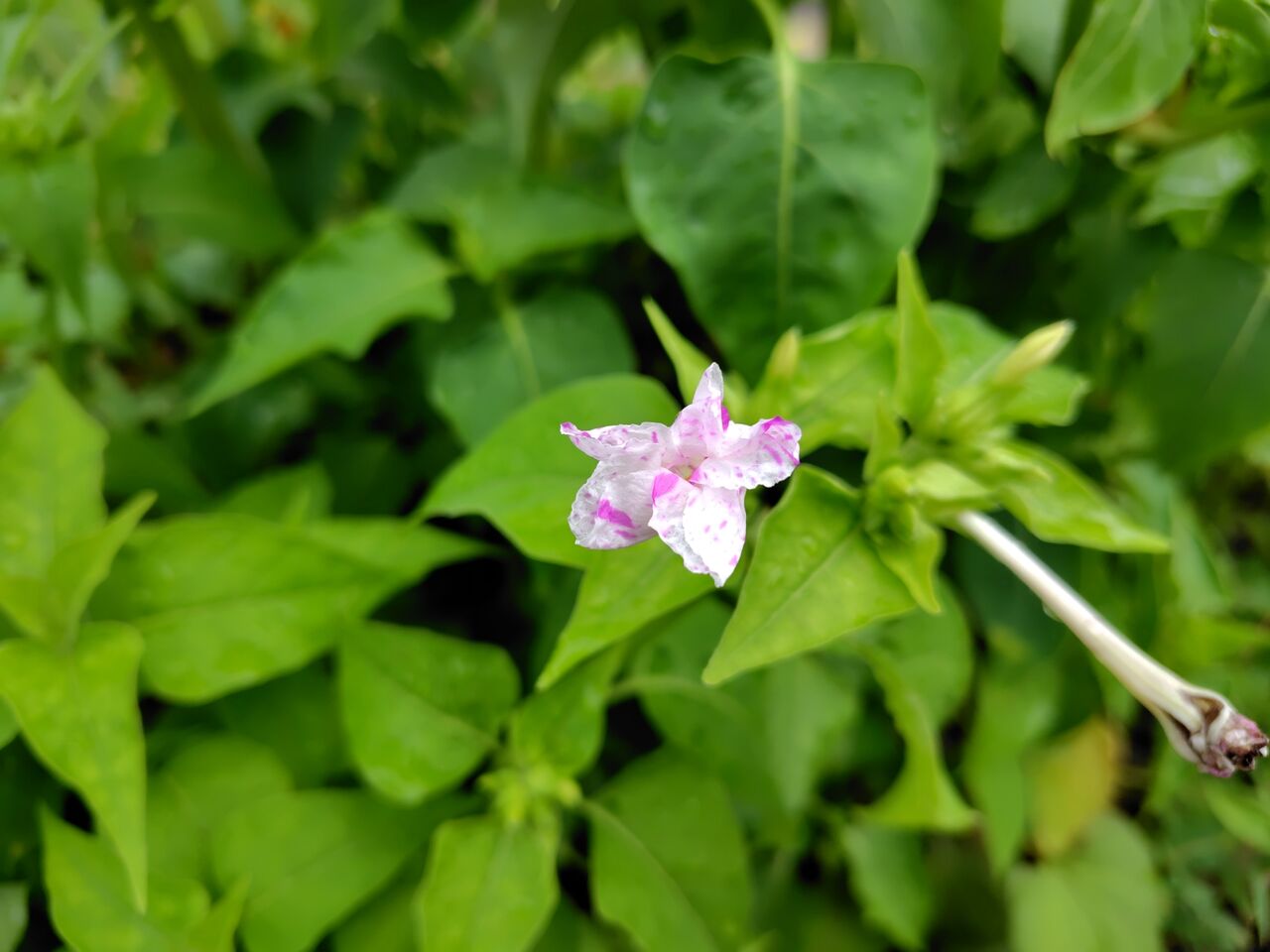 やっと、赤色と黄色以外のオシロイバナが咲きました。