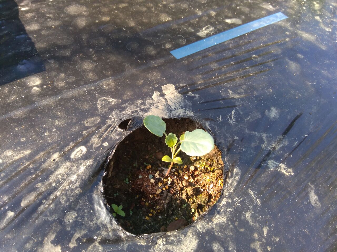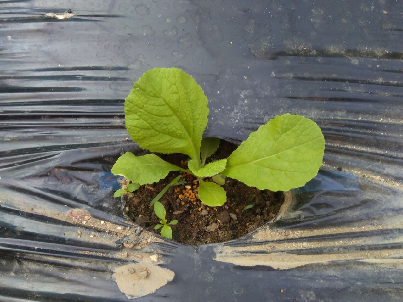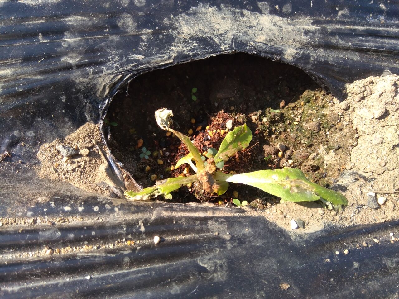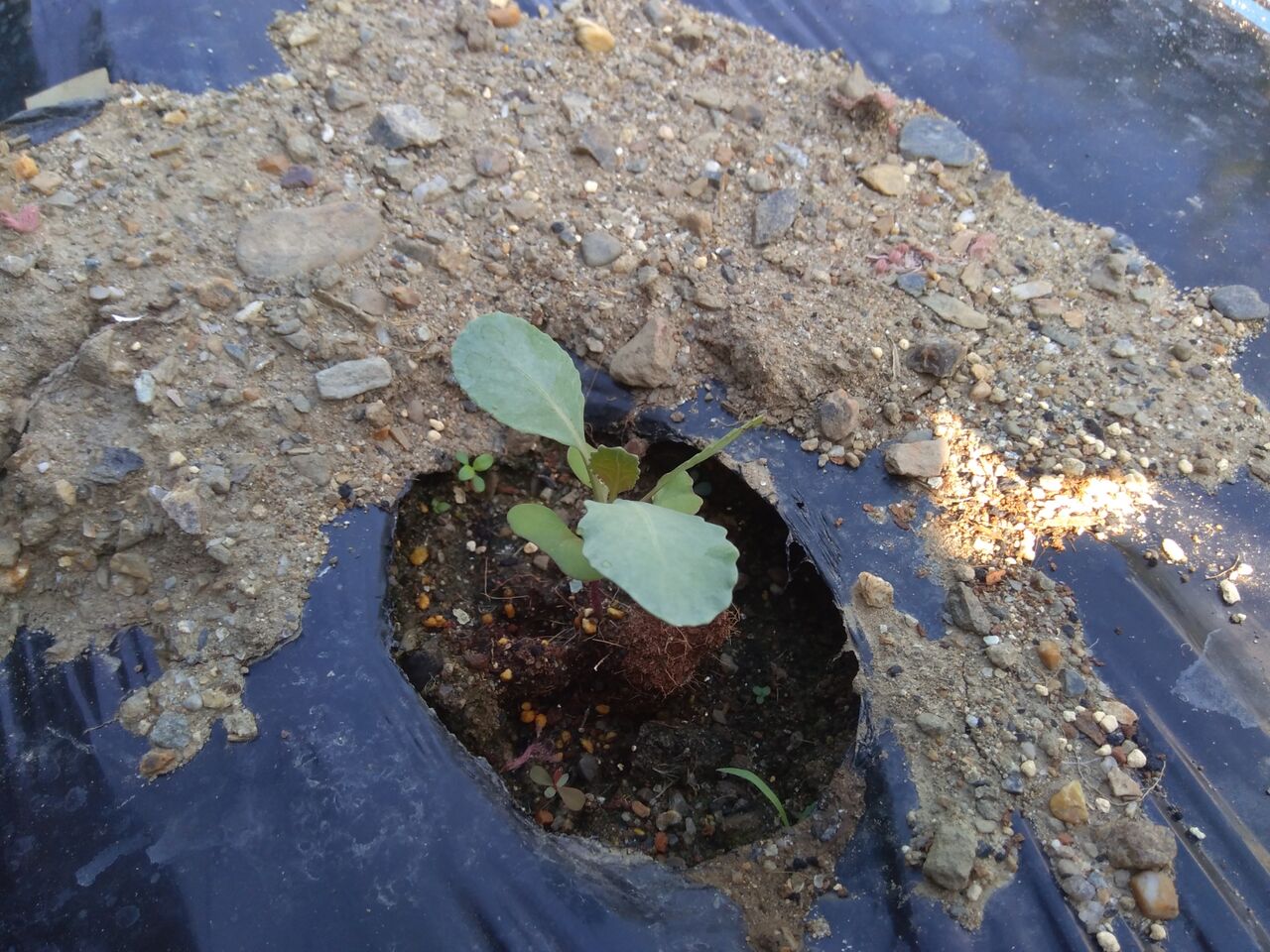 シンクイムシにやられたマルチ穴には、大根の種を蒔いておきました。