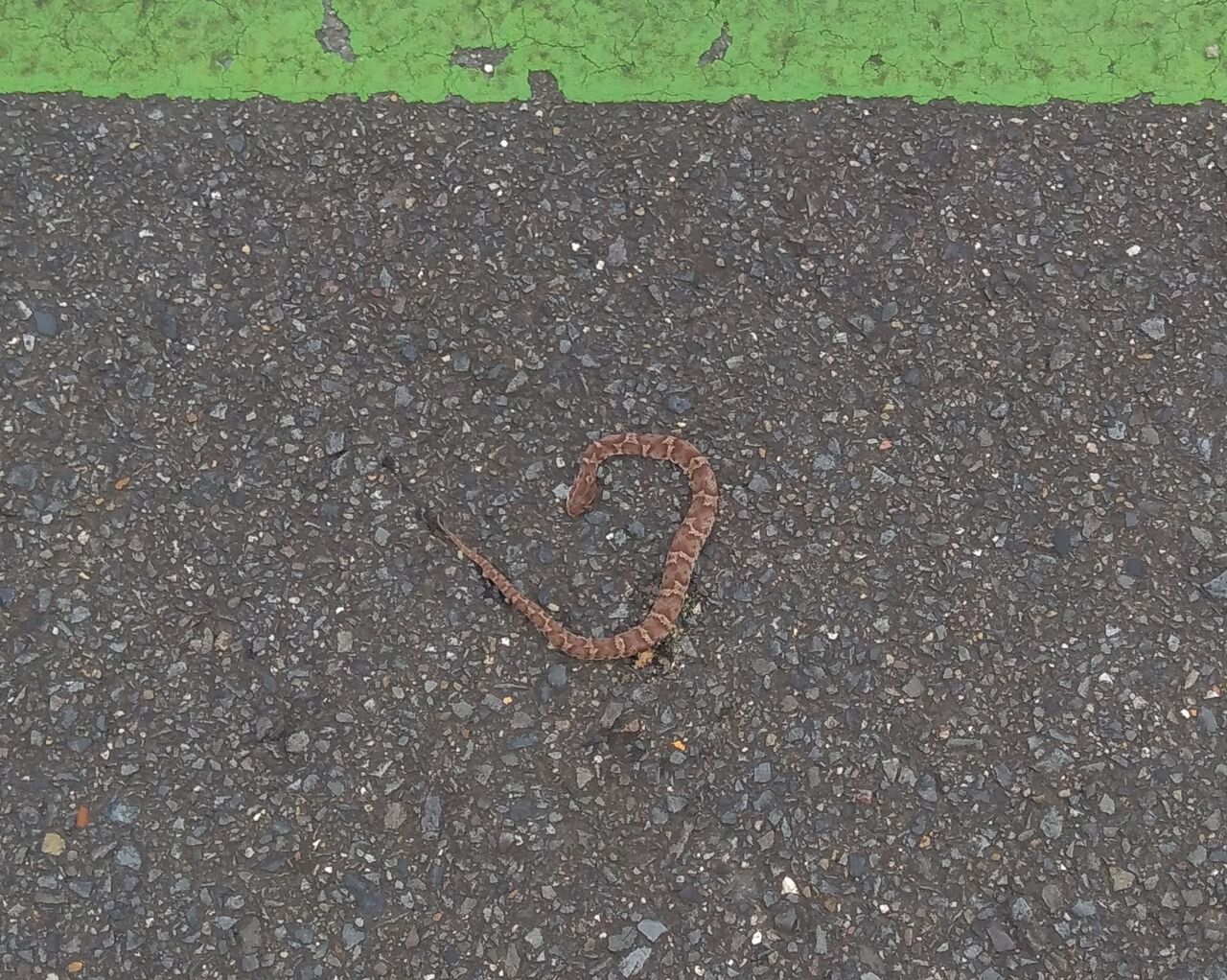 昨日午前6時20分、生ゴミをゴミステーションに持って行くと、道路に小さなマムシが死んでいました。