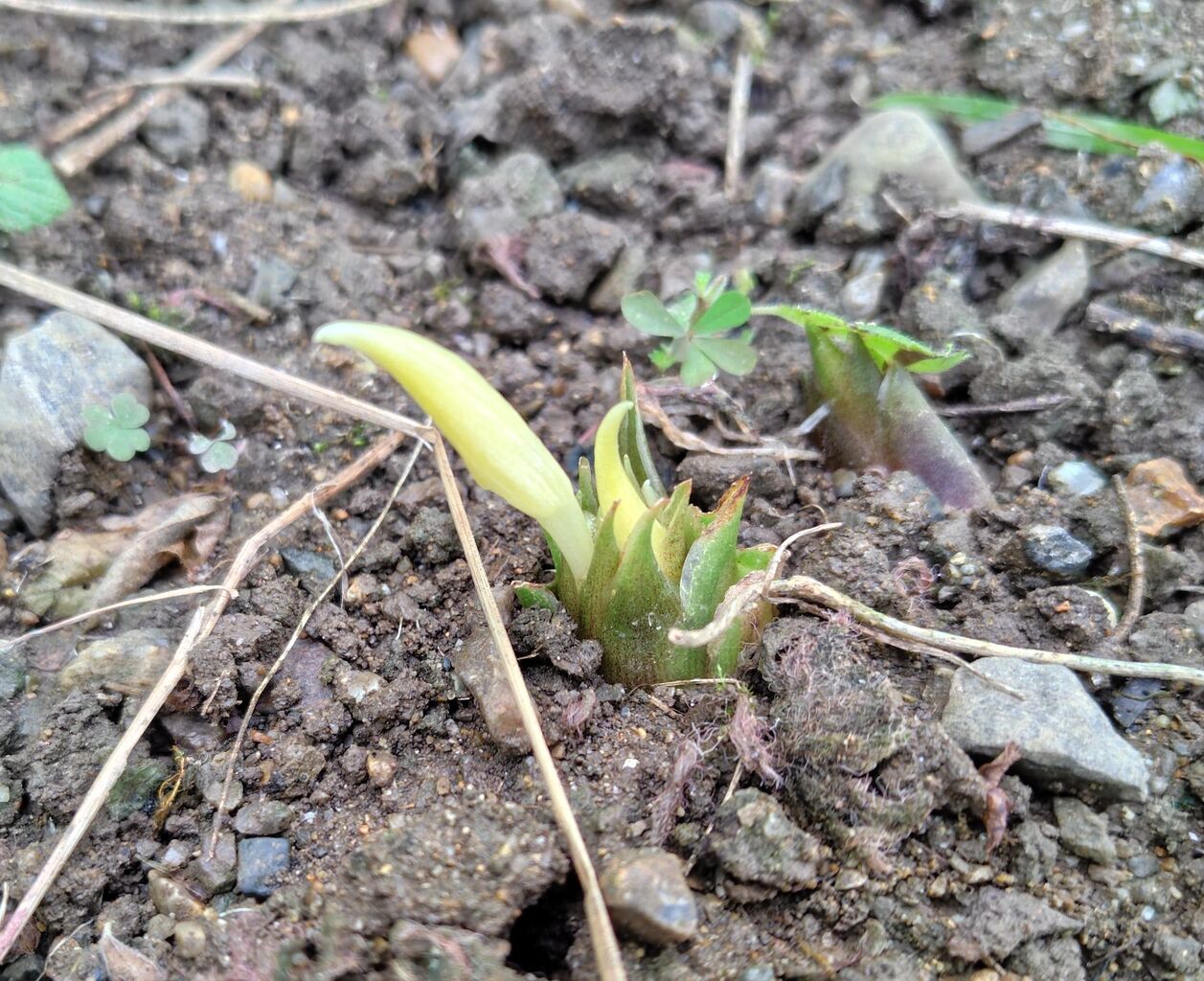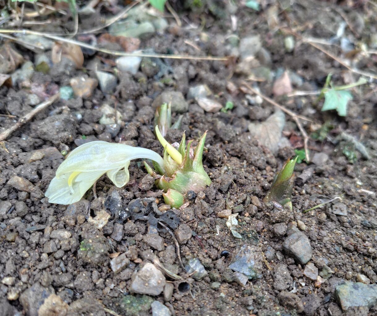 一昨日、久しぶりに雨が降ったからでしょうか、茗荷(ミョウガ)が幾つも出ていました。