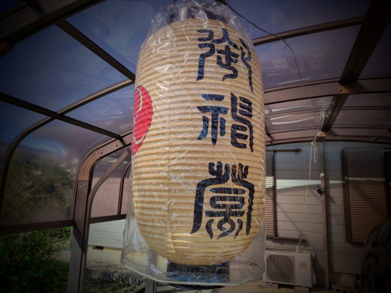 その後、土蔵からお祭りの提灯を出して、ガレージに吊るしました。