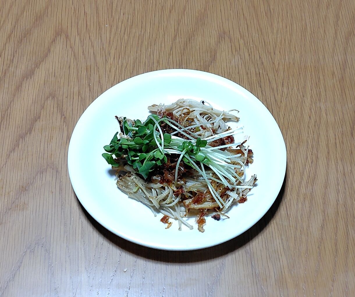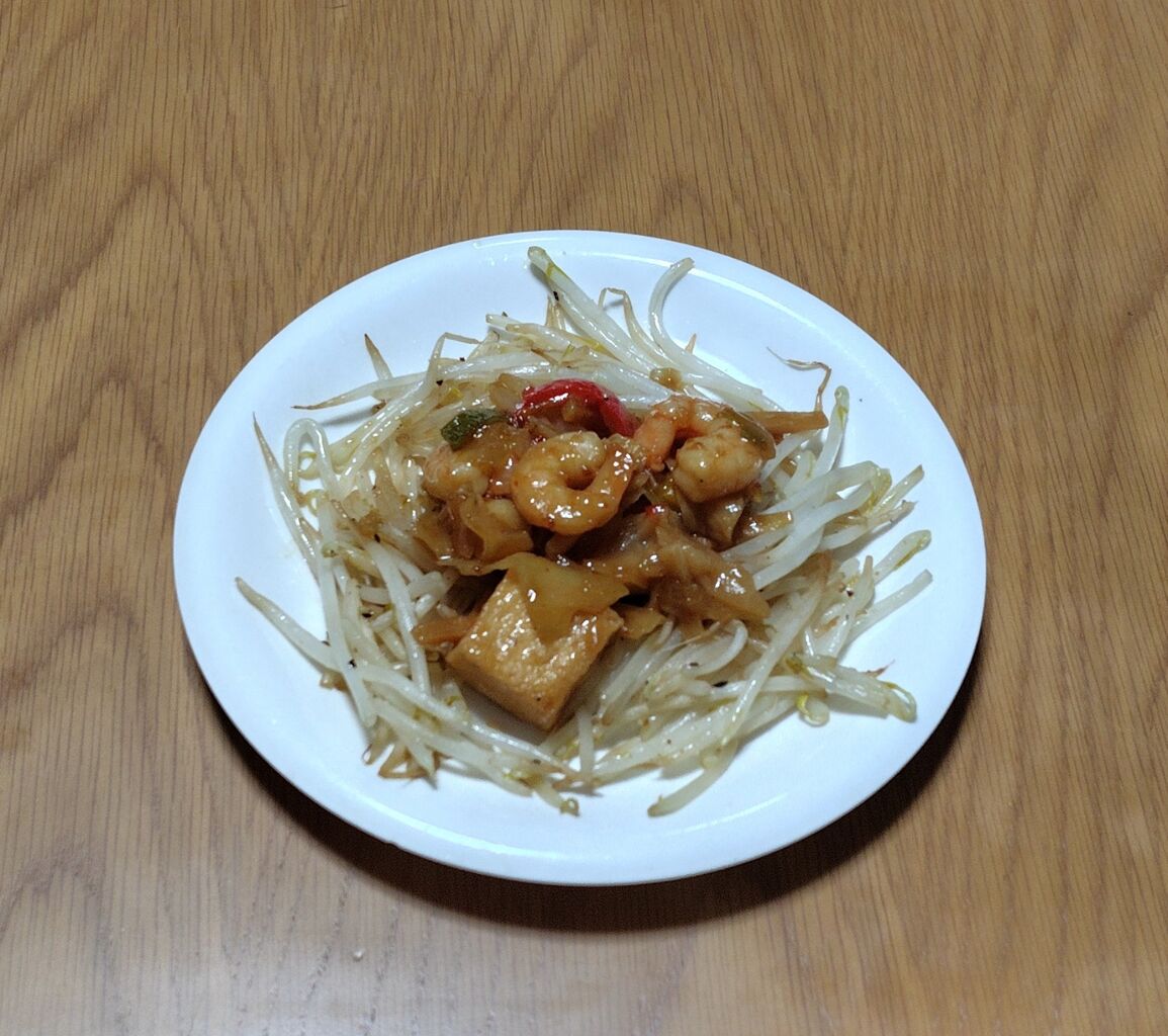 味が濃いので、炒めたもやしの上にのせました。