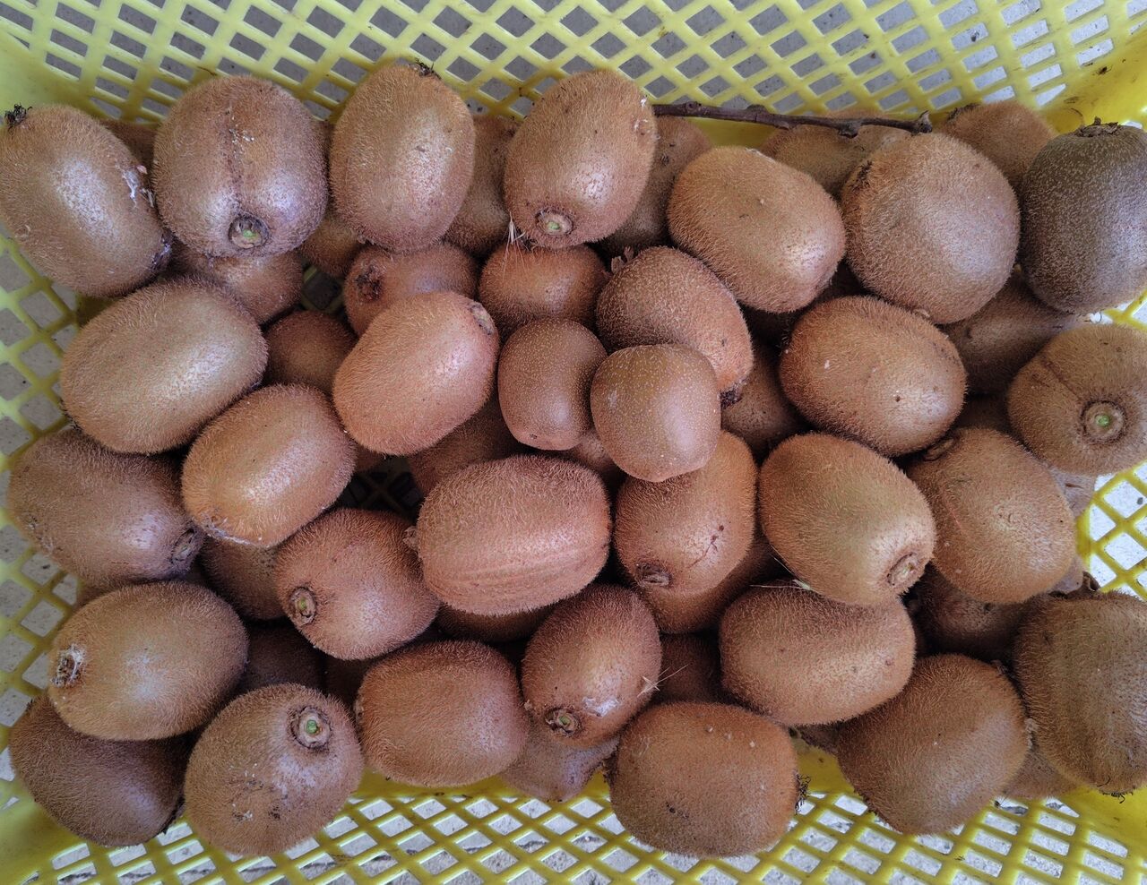 写真の中央の特に小さな実は、ゴールドキウイです。