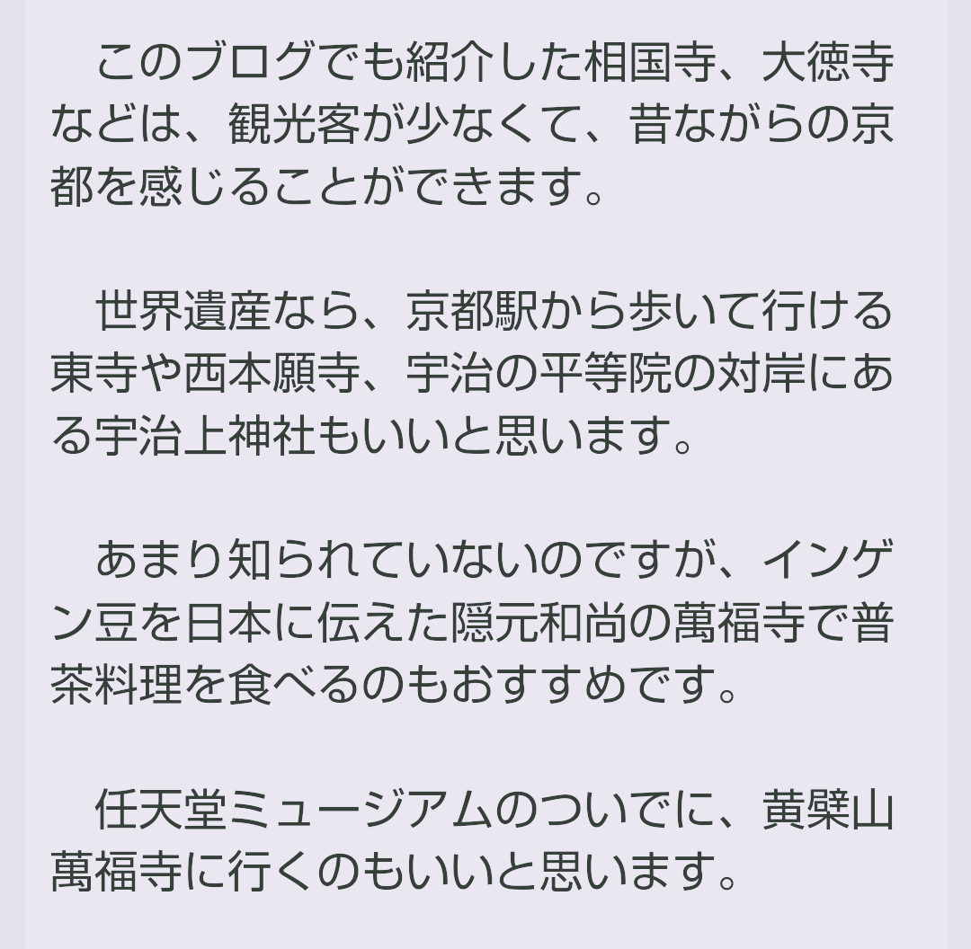 2週間前のブログ記事で、京都のおすすめの観光地を紹介しました。