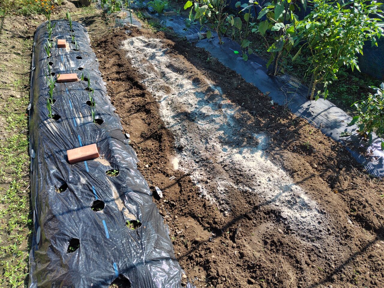 カルチベーターで耕してから、苦土石灰を撒いておきました。