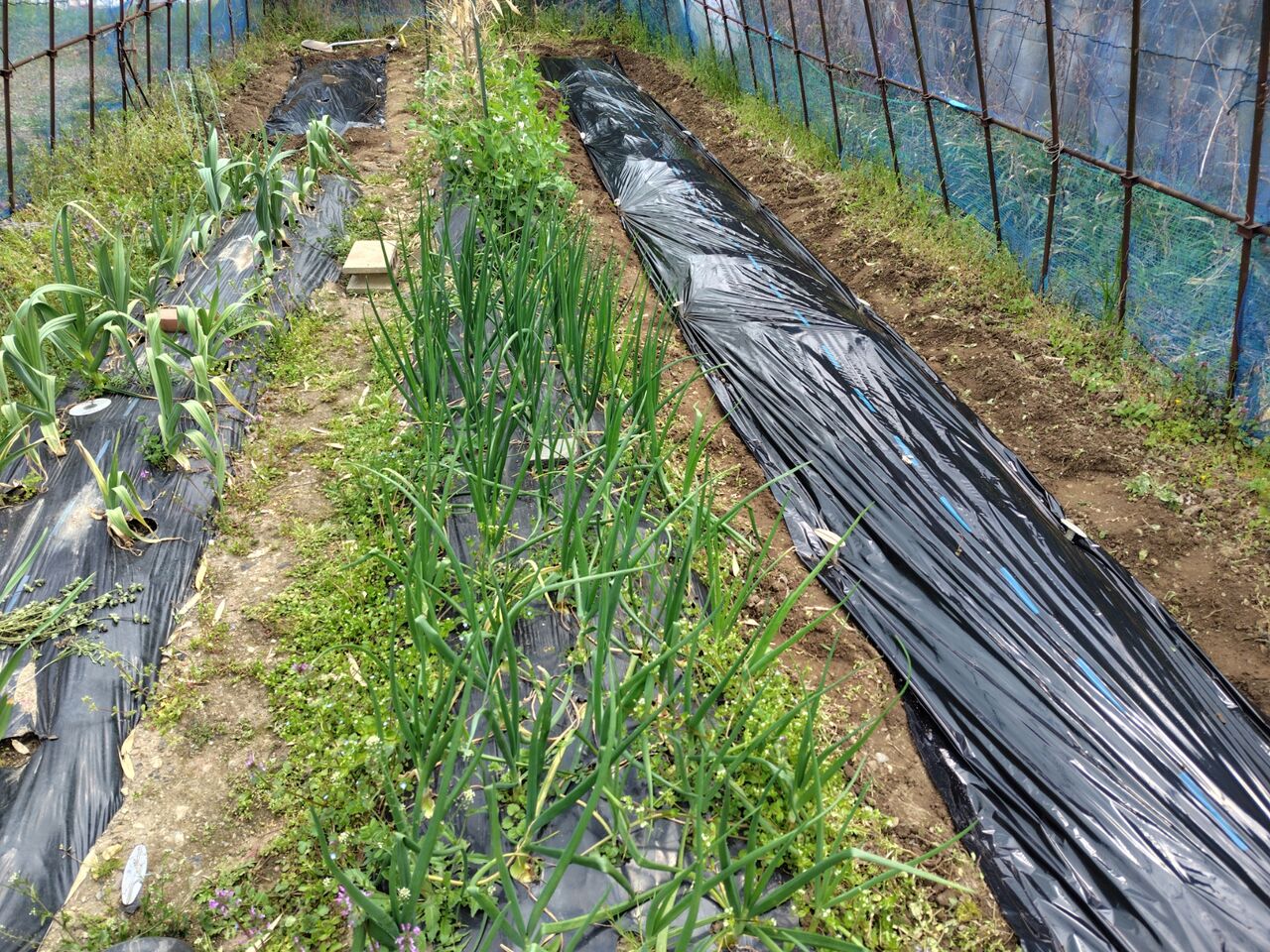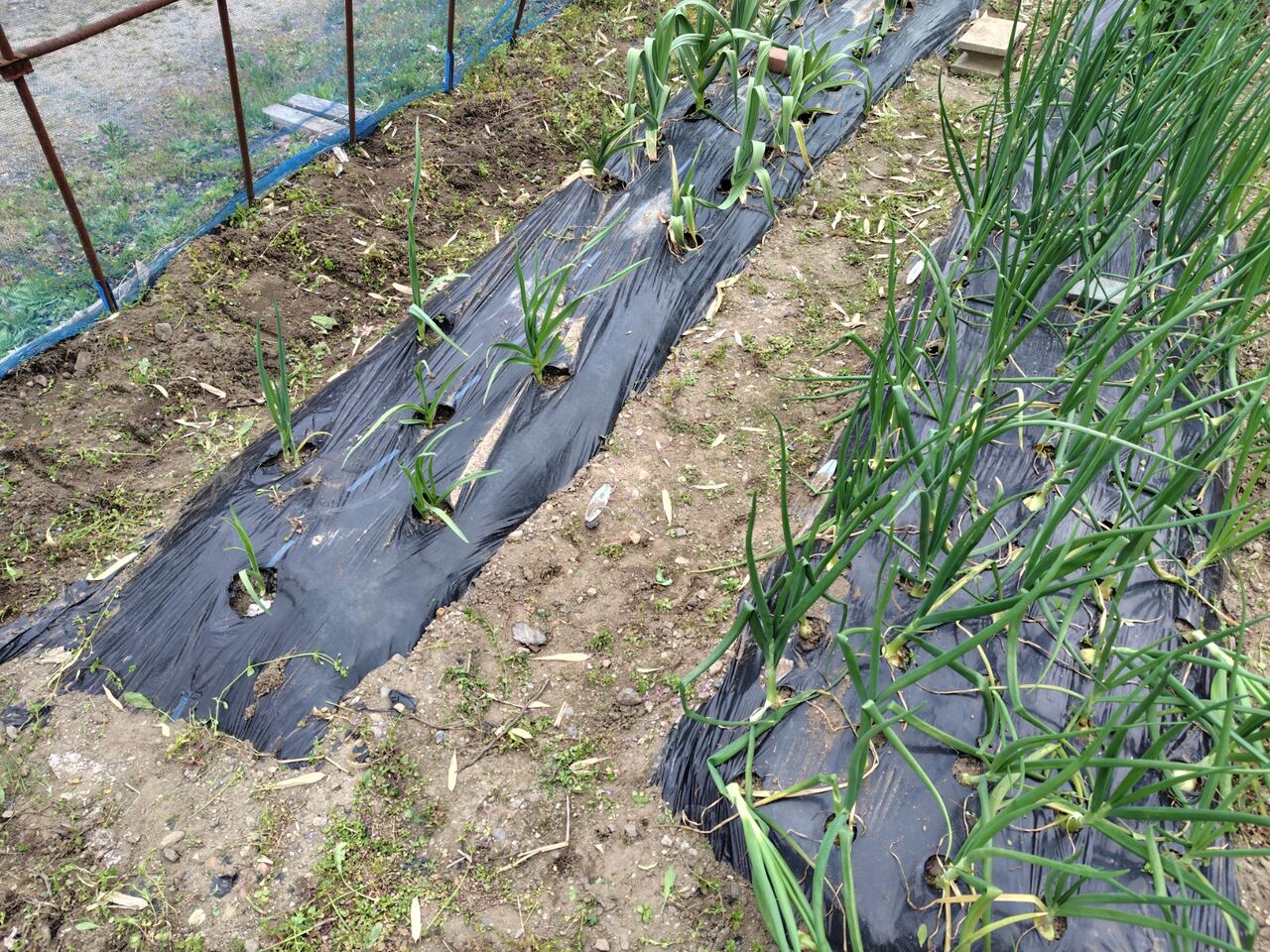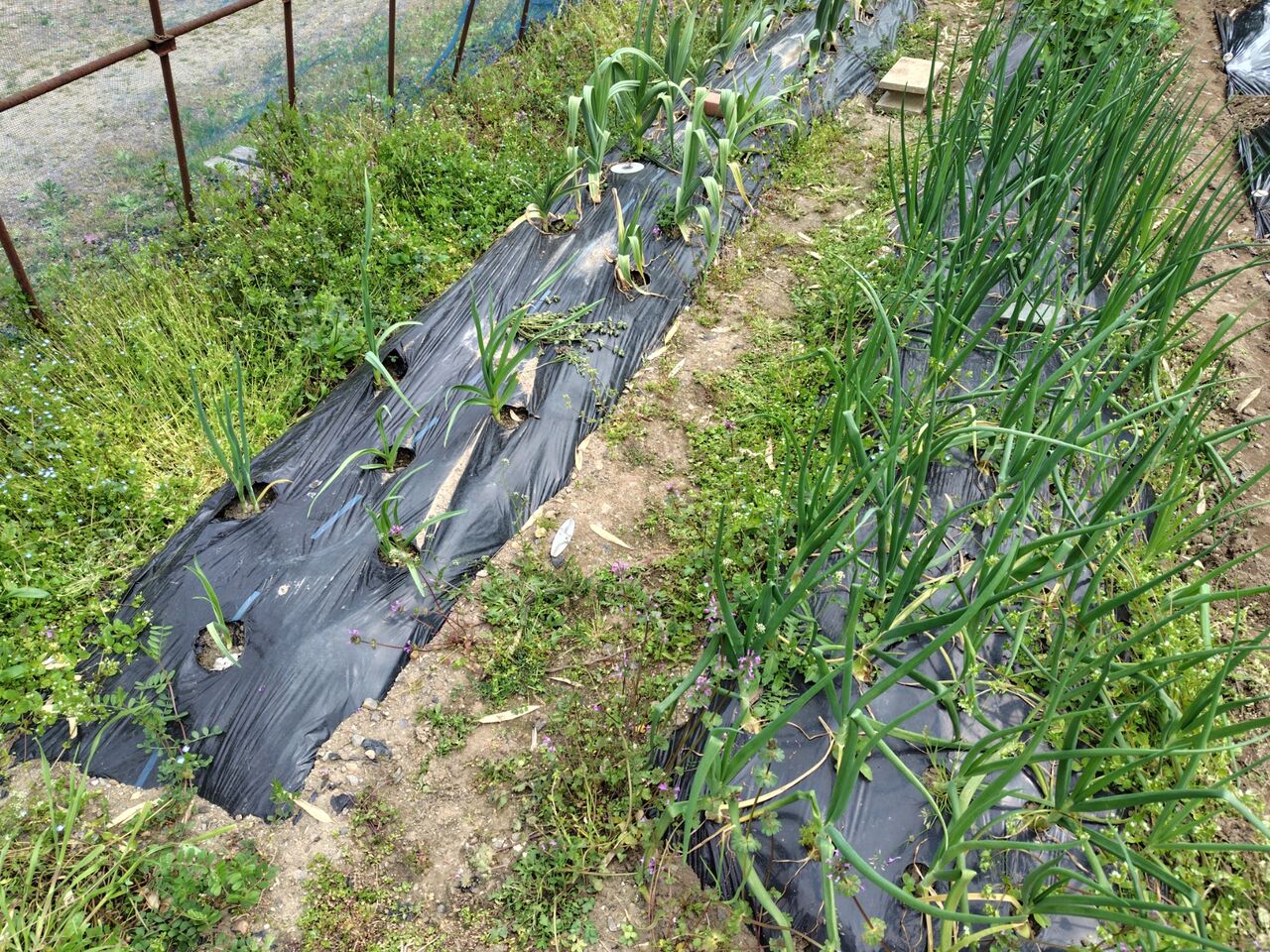 玉ねぎ、ニンニクの周りの草むしりをしました。