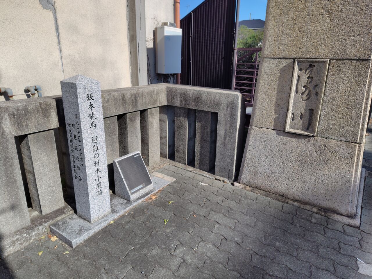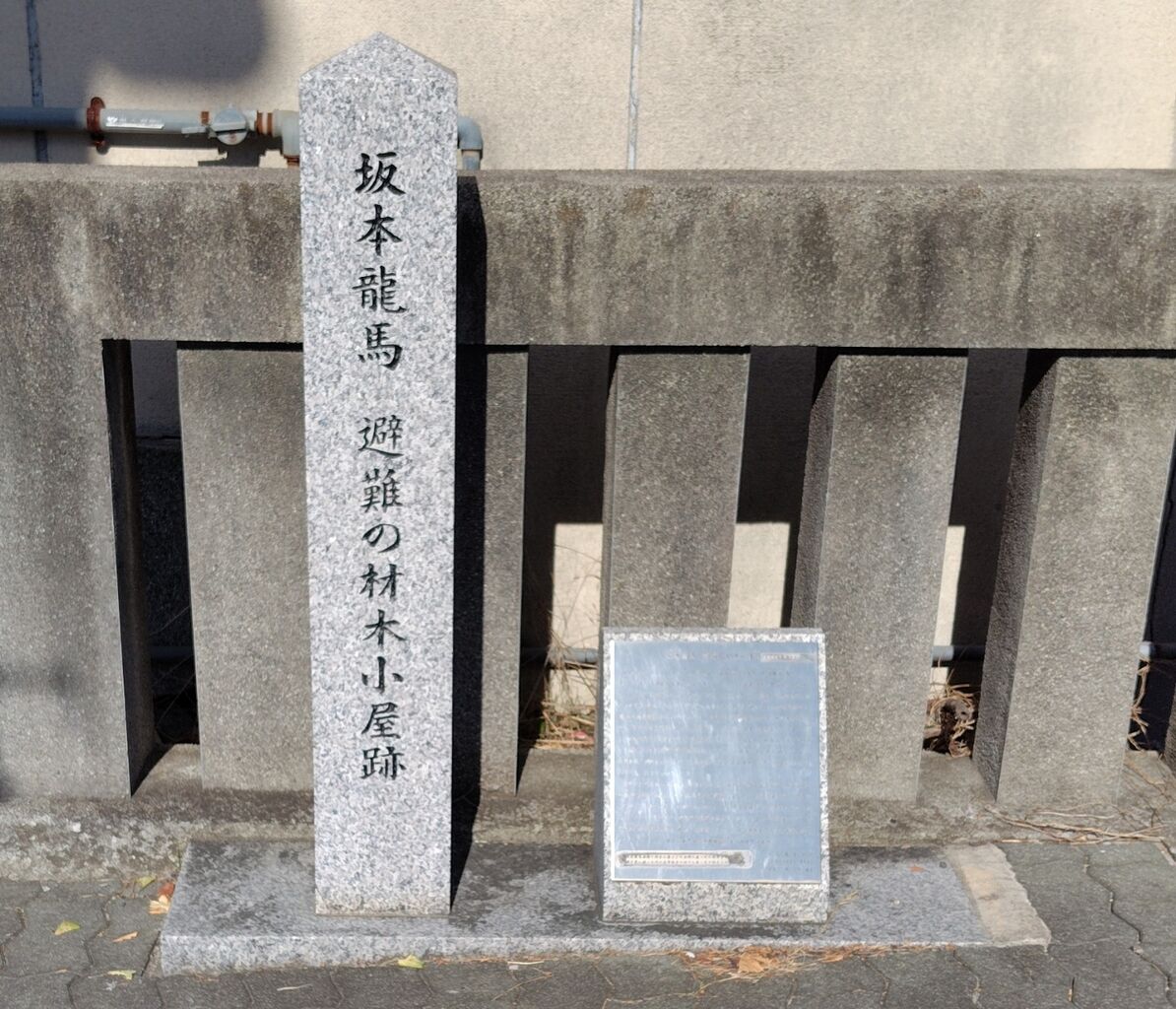 寺田屋騒動で負傷した坂本龍馬が逃げてきた材木小屋があった場所です。