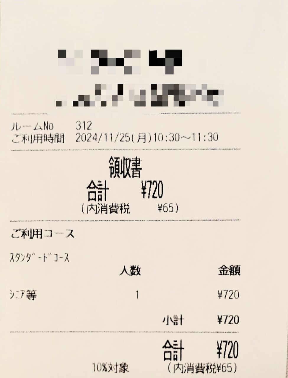 シニアのスタンダードコース(ソフトドリンク無料)が、1時間で720円でした。
