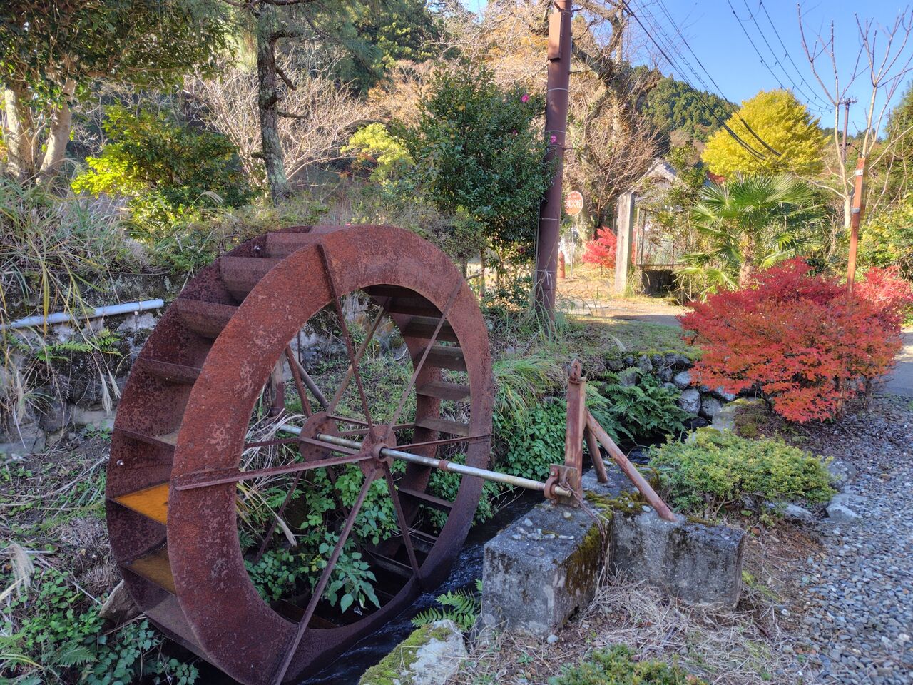動いていないですが、風情のある水車です。