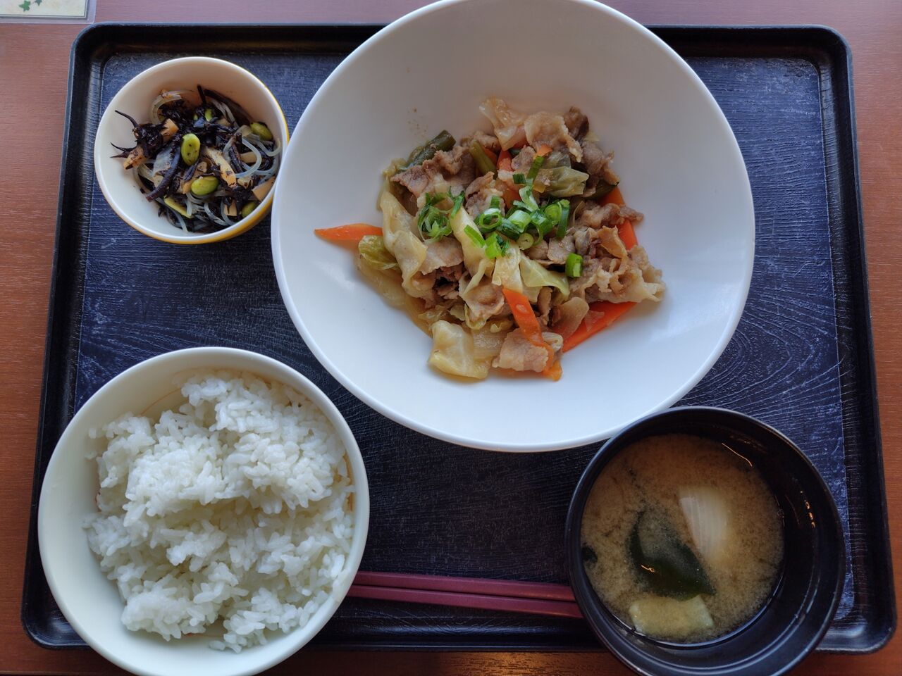 豚肉と野菜の炒め物定食にしました。