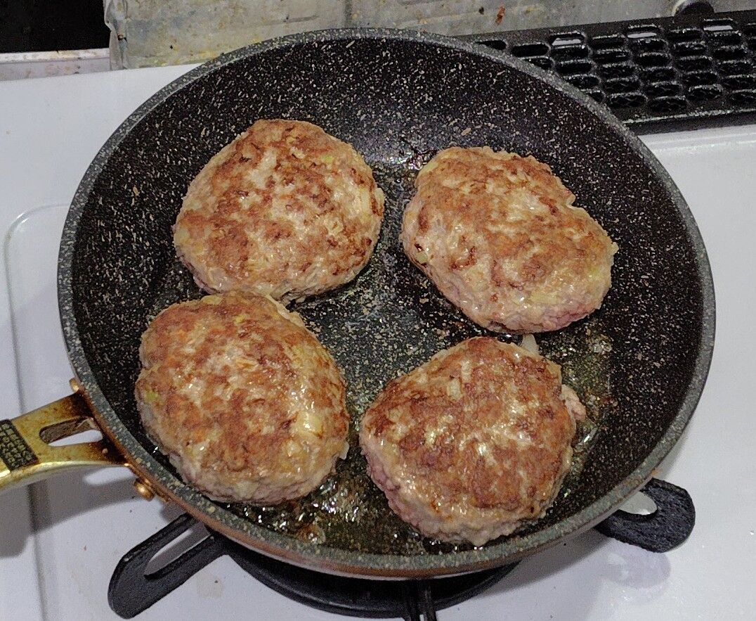 パン粉、玉ねぎ、卵だけの肉無しハンバーグを作って、「パンバーグ」と名付けていました。