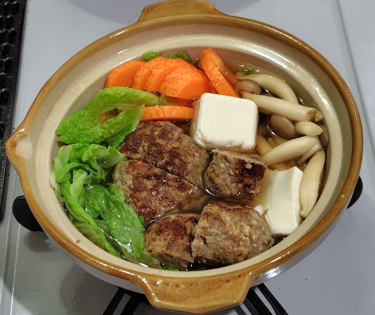 昨日の晩ごはんは、ハンバーグ鍋にしました。