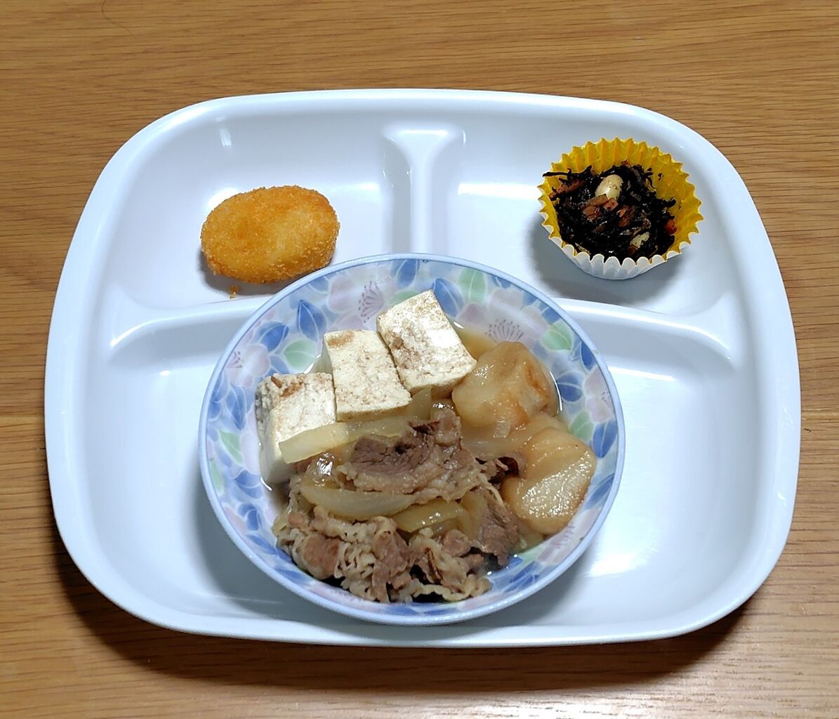以前に購入した、すき家の牛丼パックをもとに、肉豆腐を作りました。