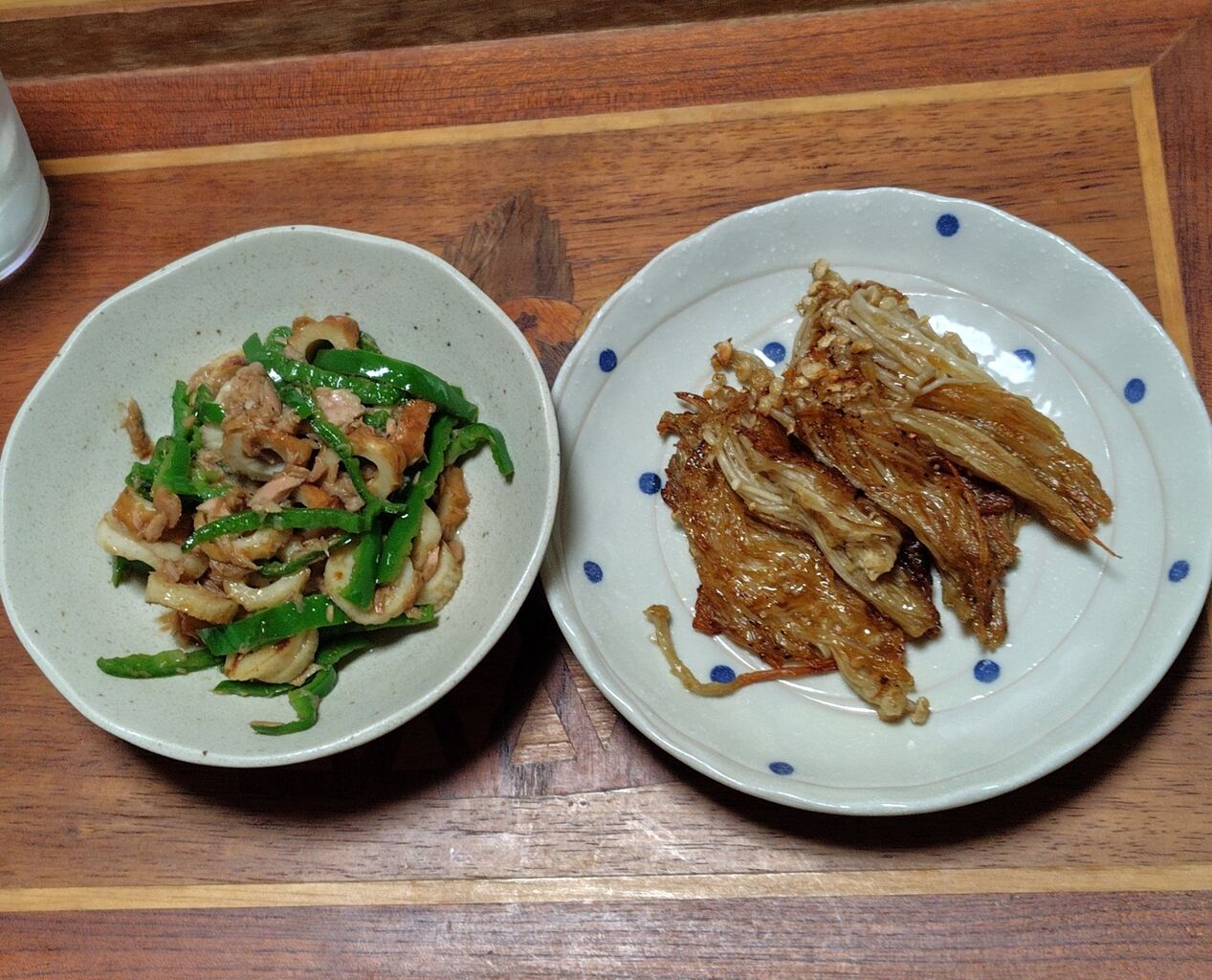 左は、ピーマン、竹輪、シーチキンの炒め物です。